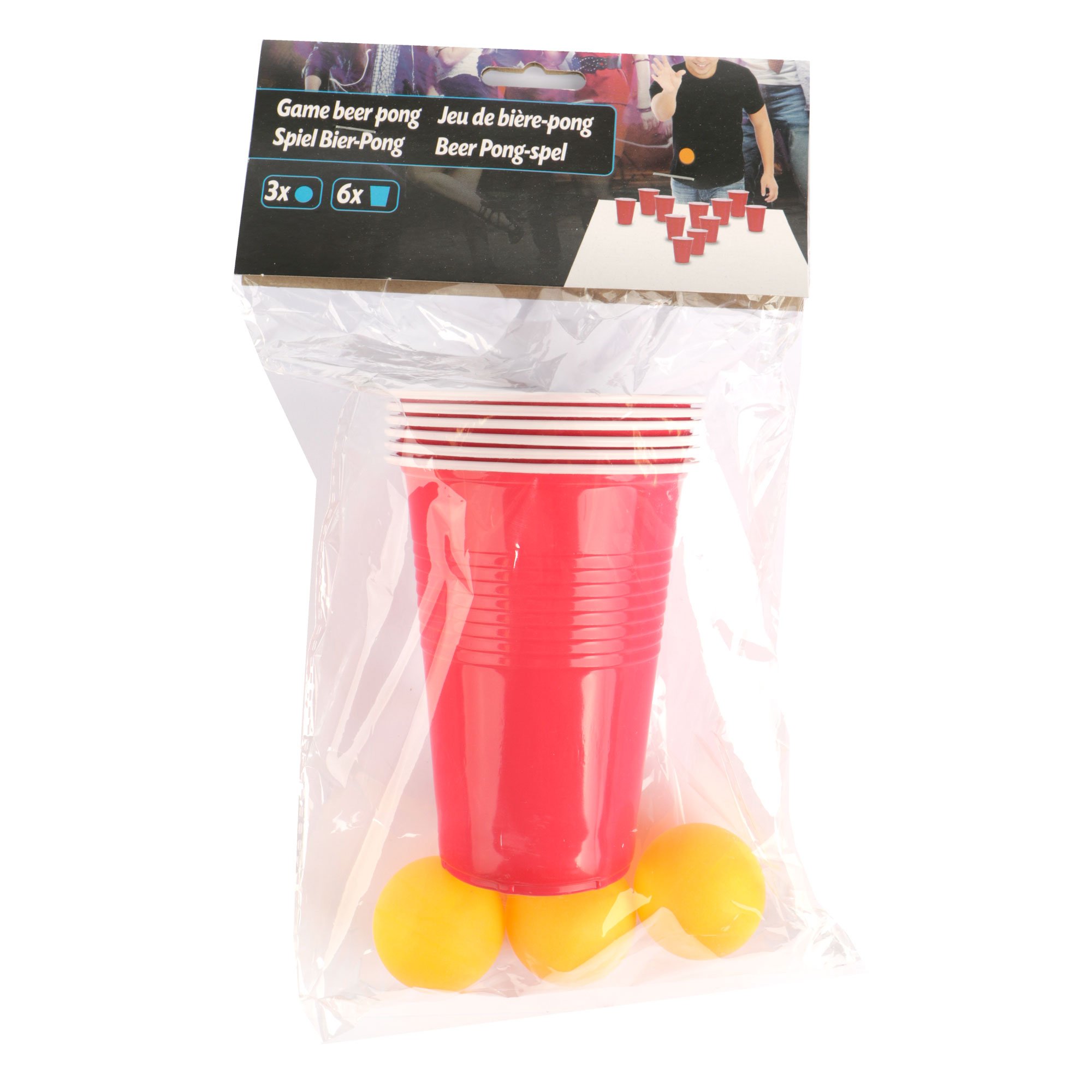 Bier pong spel 9 delig, 6 bekers en 3 ballen