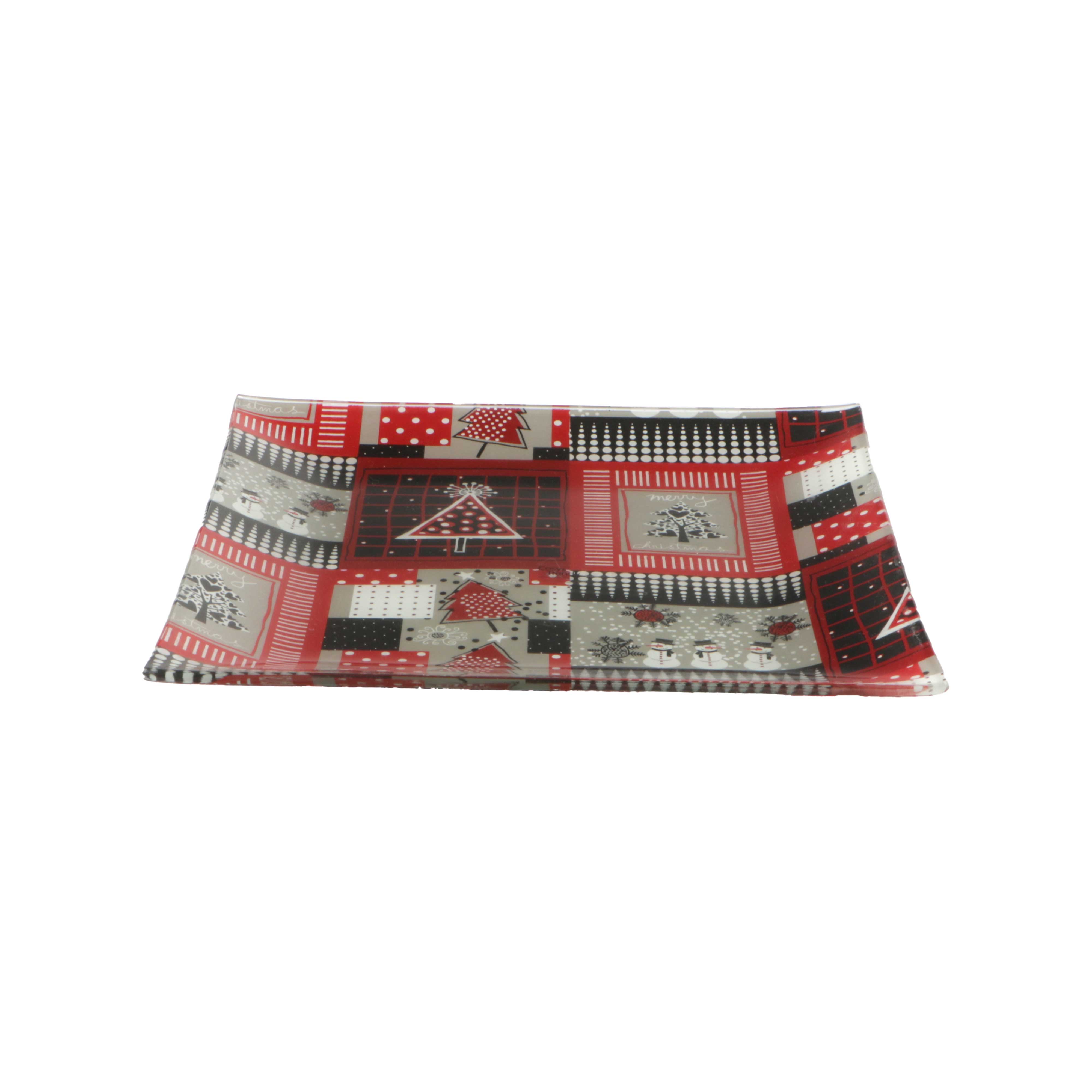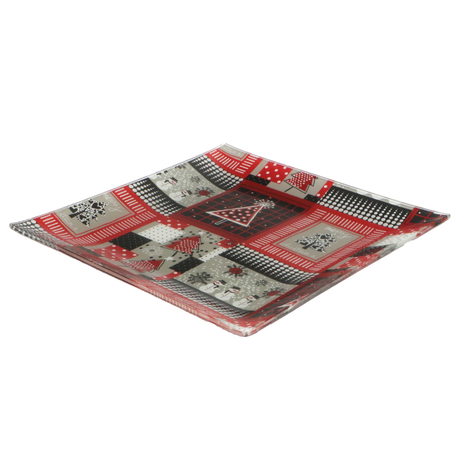 Bord met Kerstdeco rood, zwart & grijs 21,5x21,5 cm (uc)