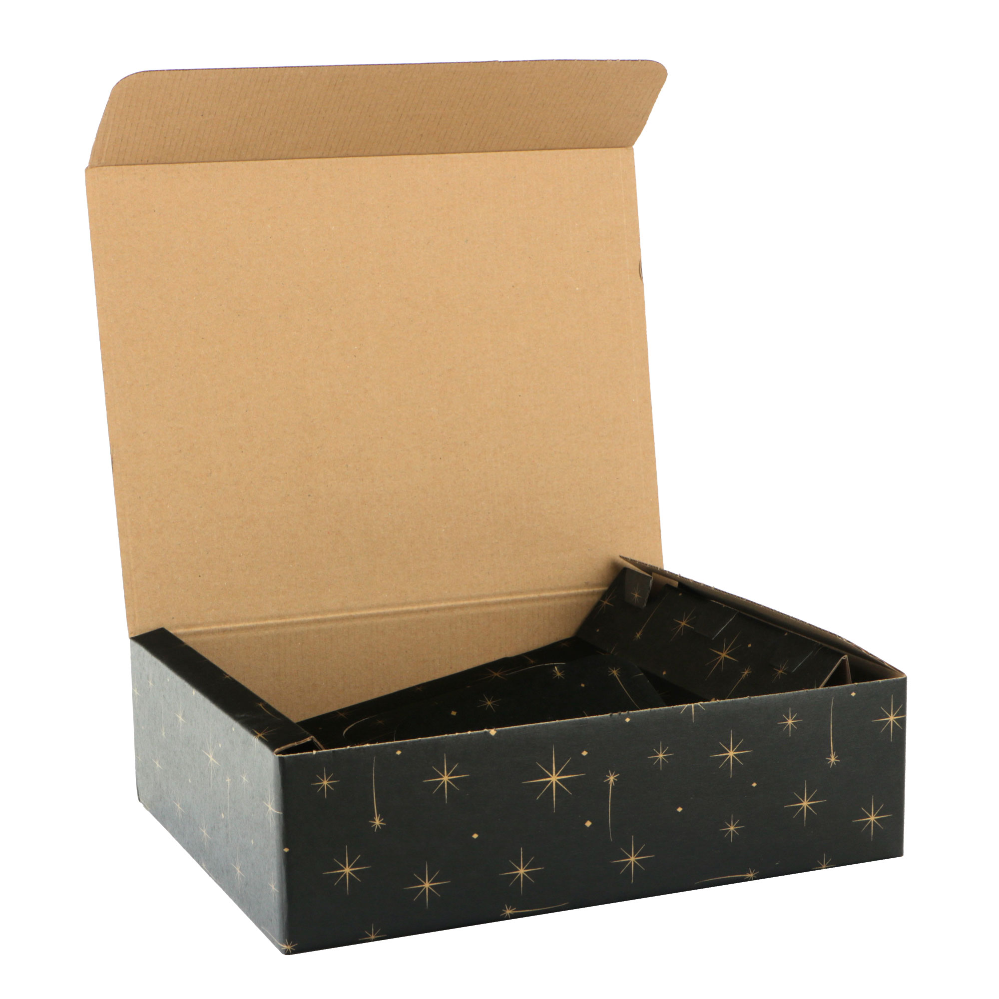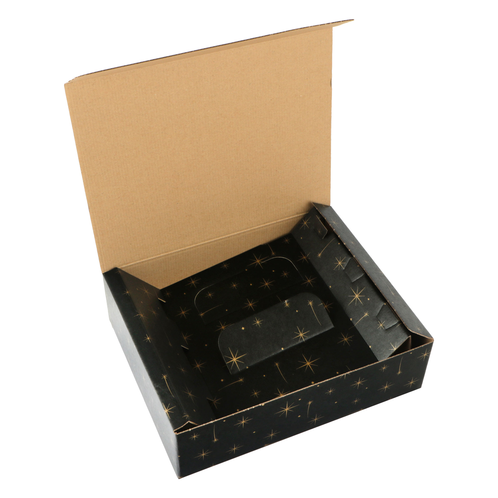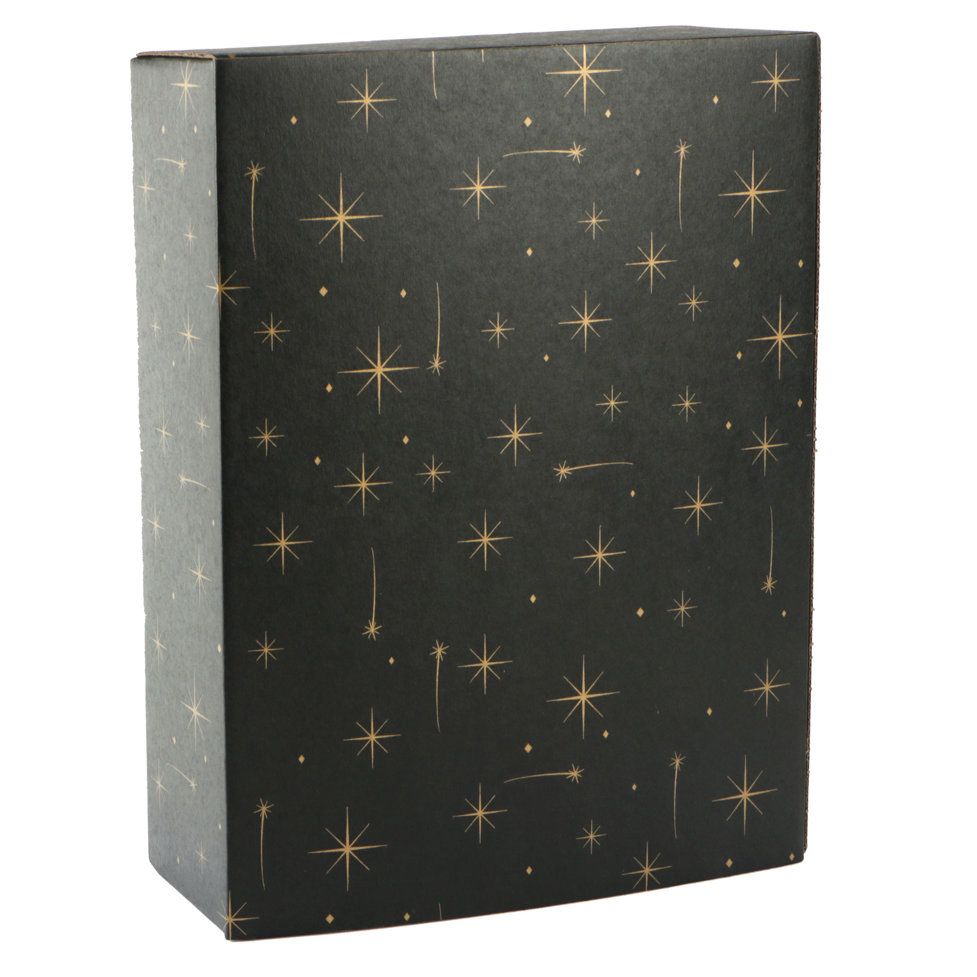 Ds à 30 geschenkdoos 3 fles 34x27x9,5 cm zwart met sterren