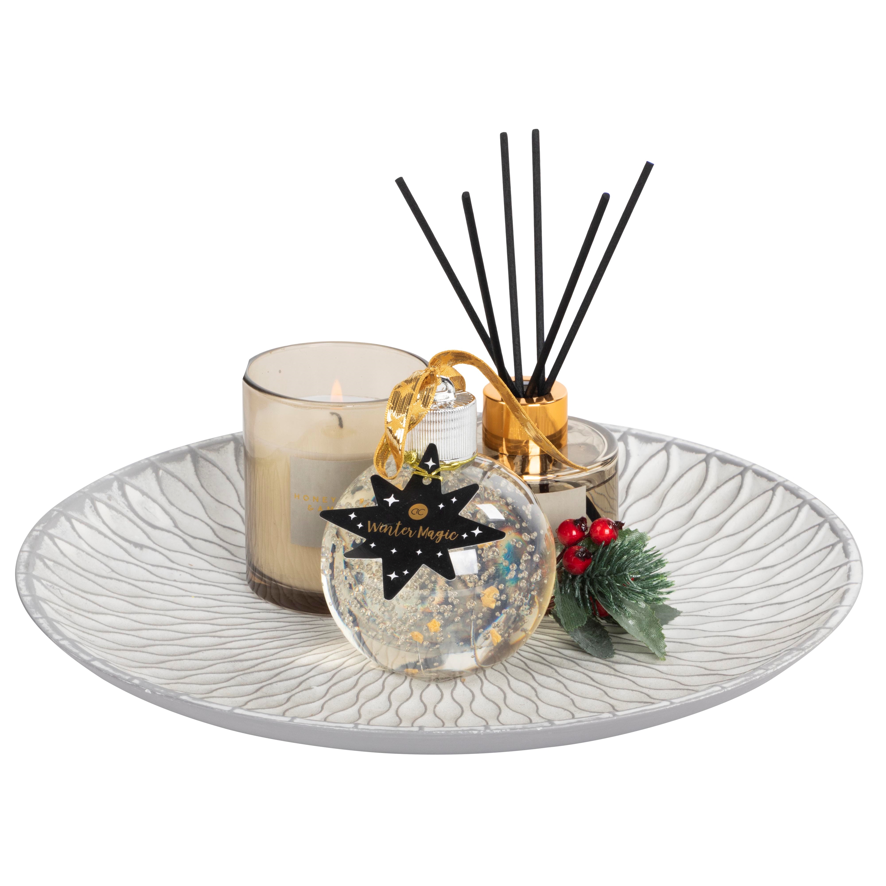 Houten decoratiebord ø29x2,5 cm wit/grijs