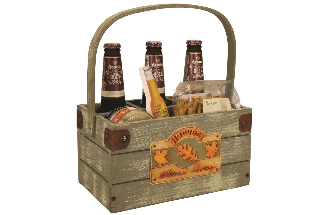 Houten draagbak 25x15x13 cm 4 vakken Harvest (uc)