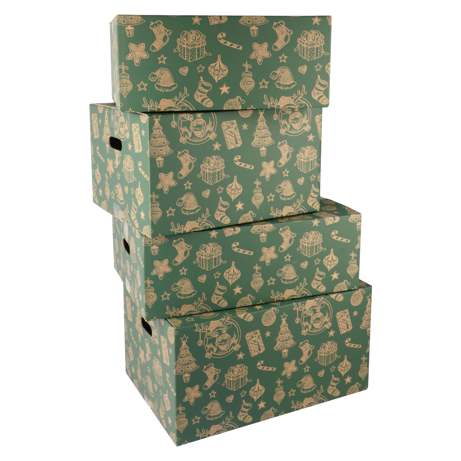 Kerstdoos H300 rendier 59x39x30 cm groen met handgrepen