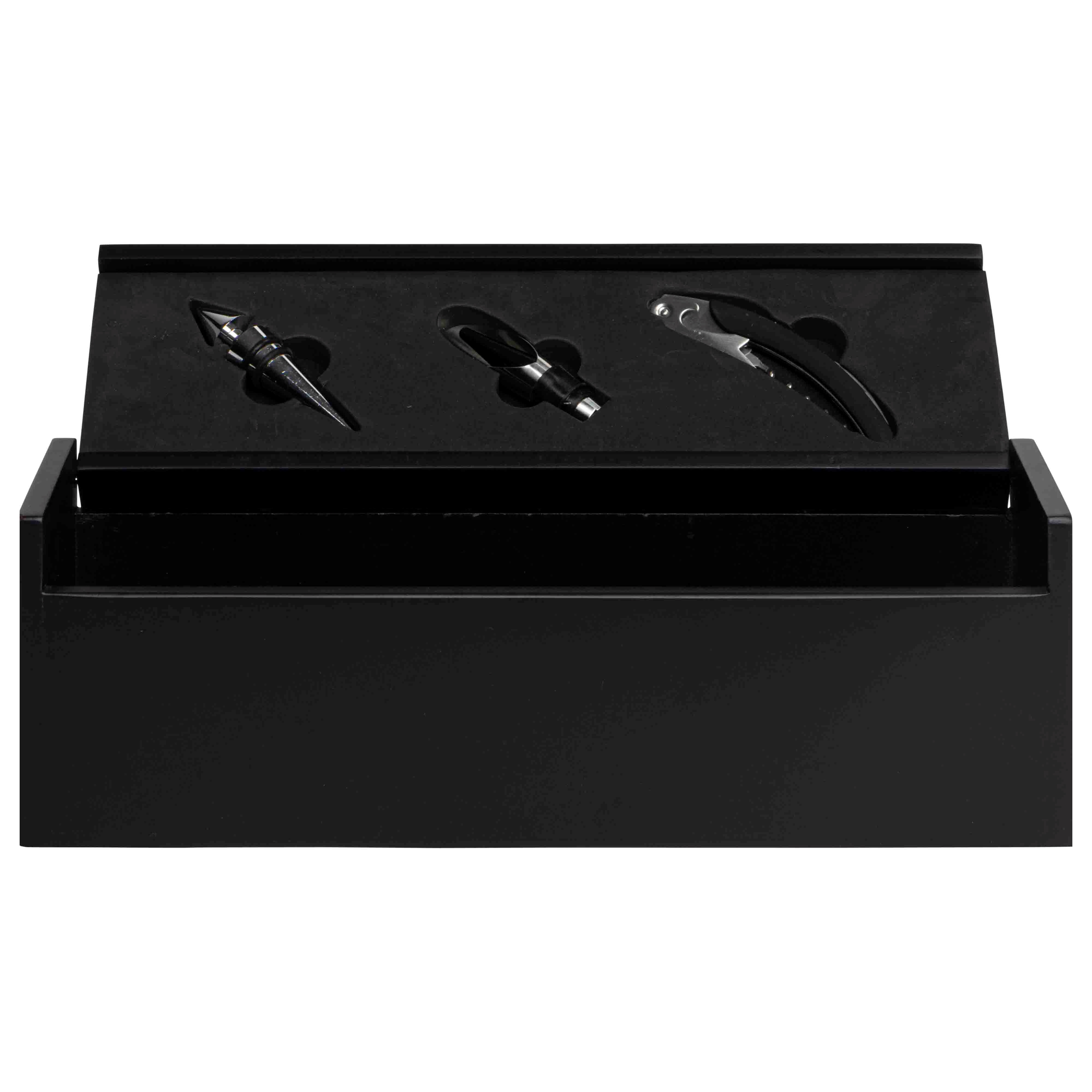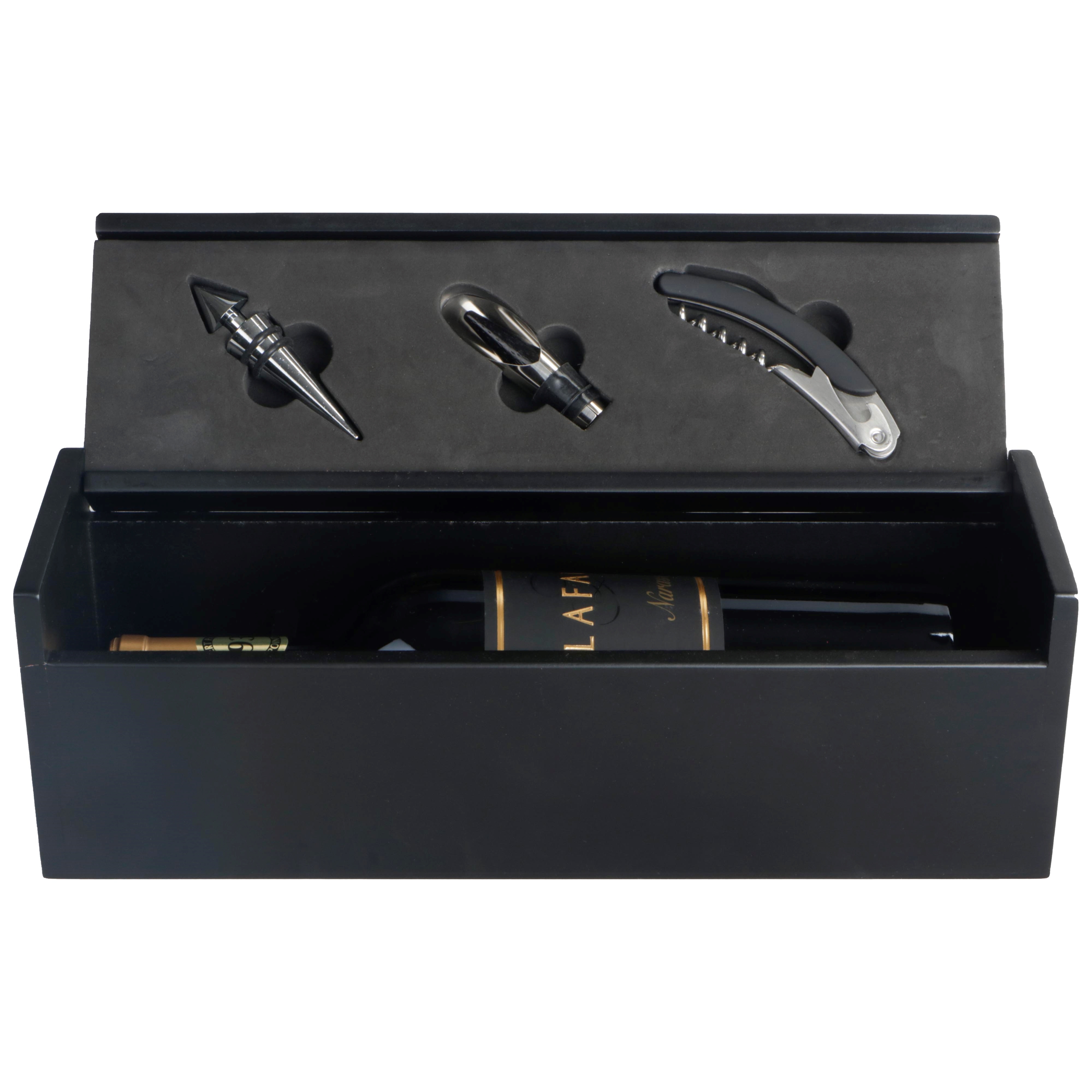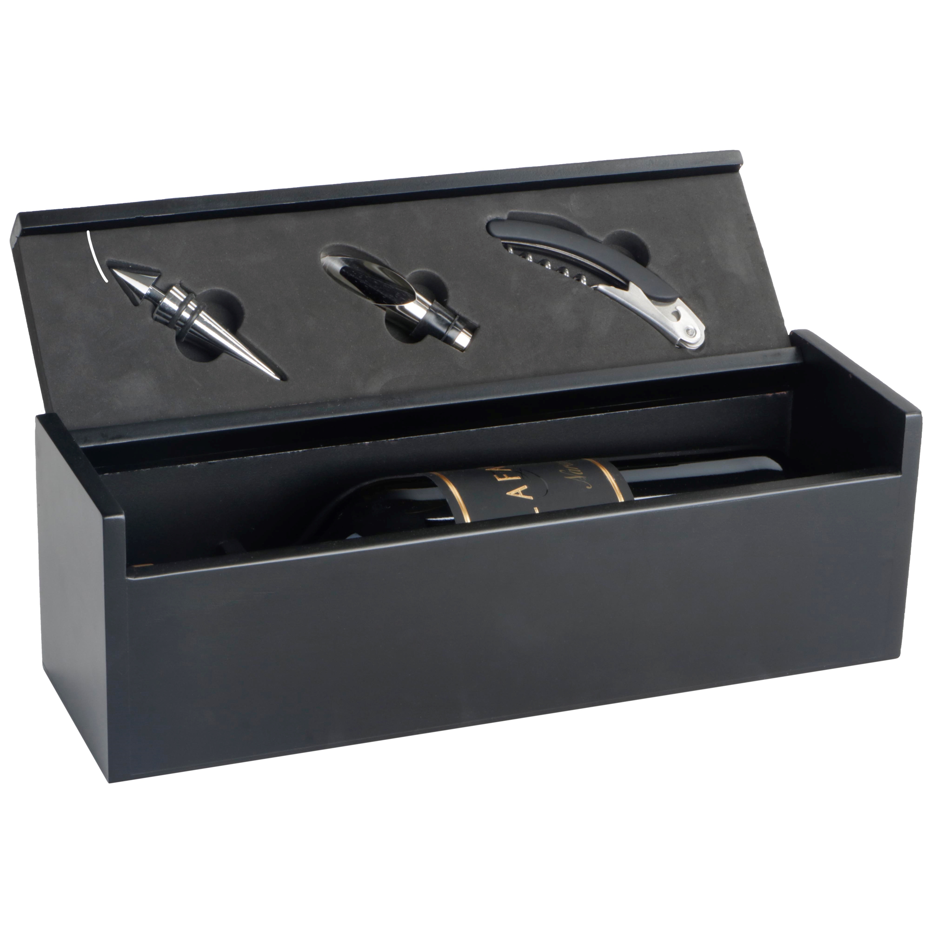 Luxe zwarte bamboe 1 fles kist met 3 accessoires