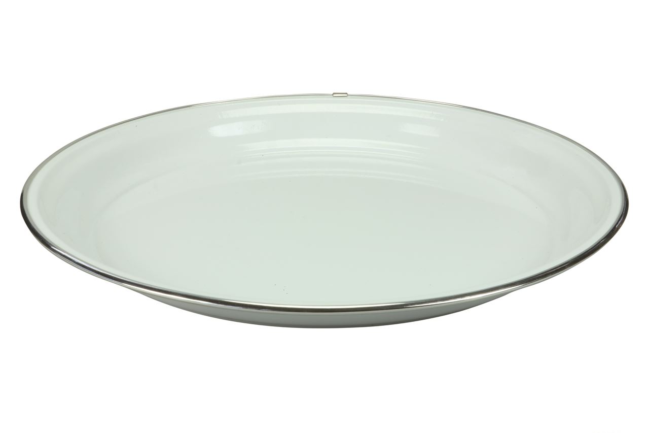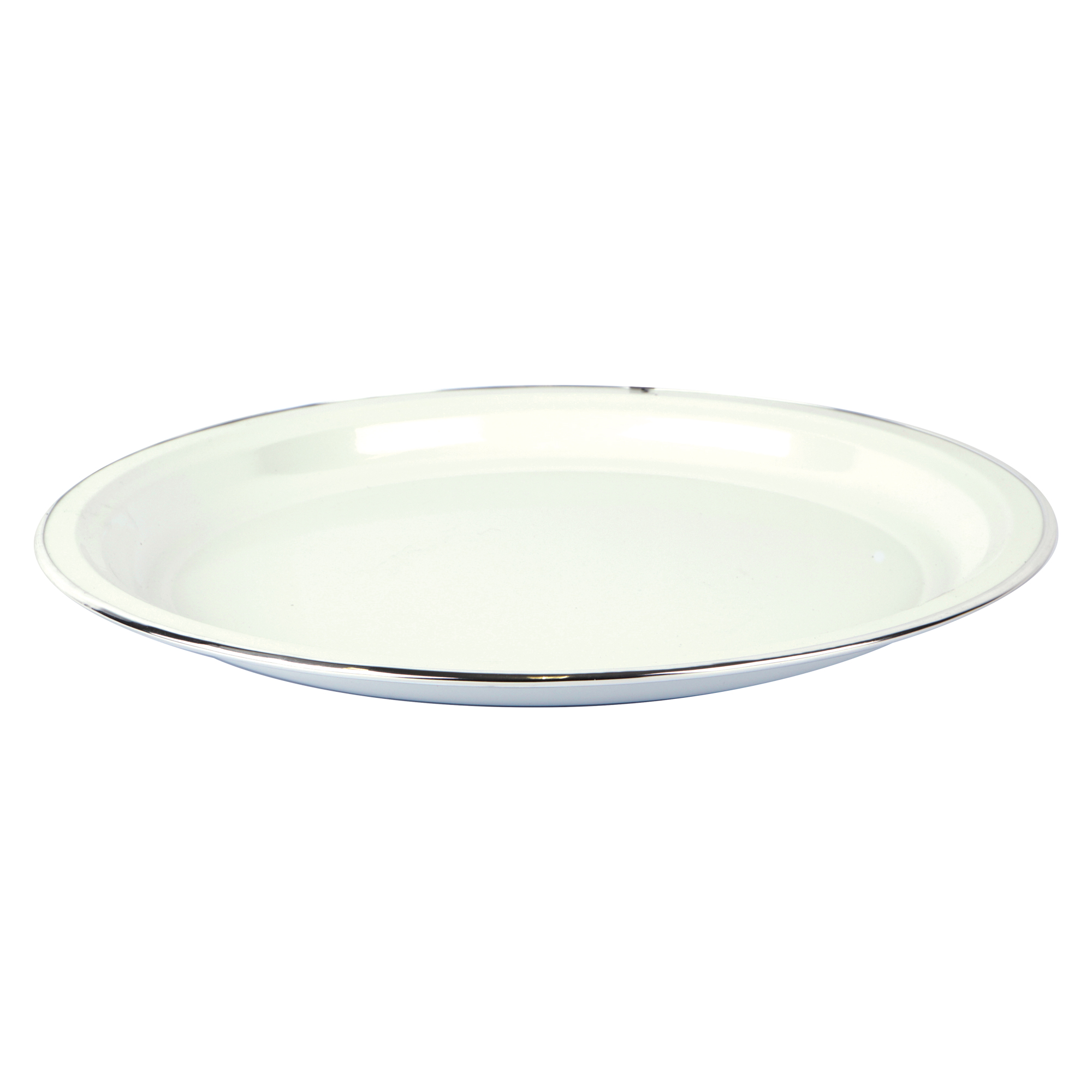 Metalen bord 39,5 cm wit met kunststof zilveren rand