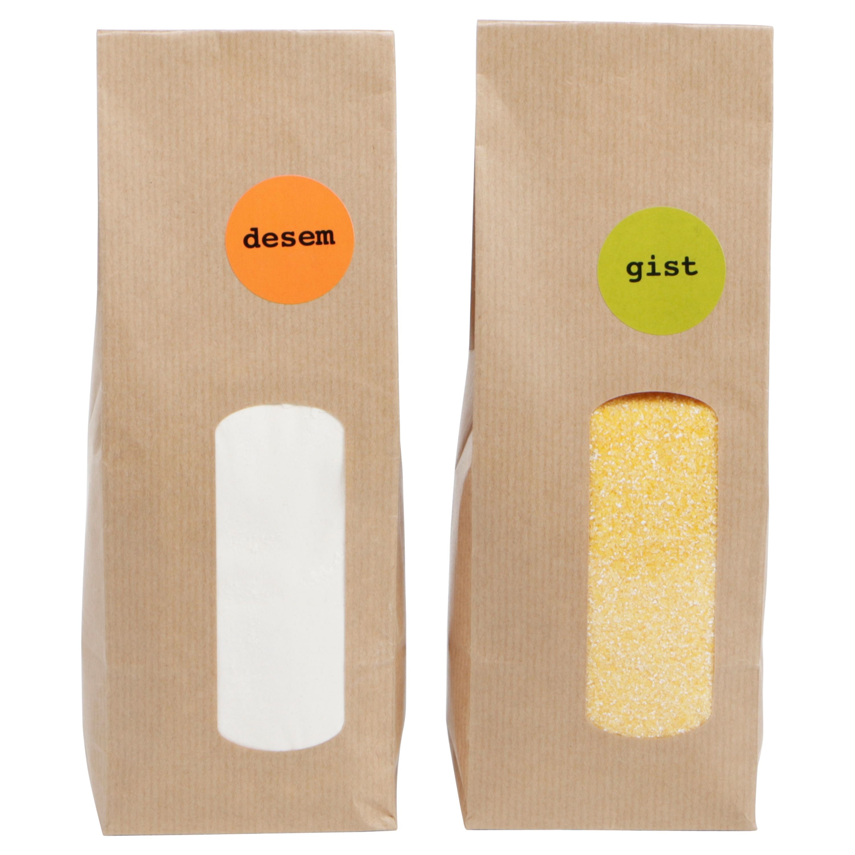 2 kleuren bedrukt en voorzien van vernislak mc-permanent formaat 3,5 cm rond rol breedte 3,8 cm, positie afstand tussen de labels 0,3 cm ean: 8718692260016