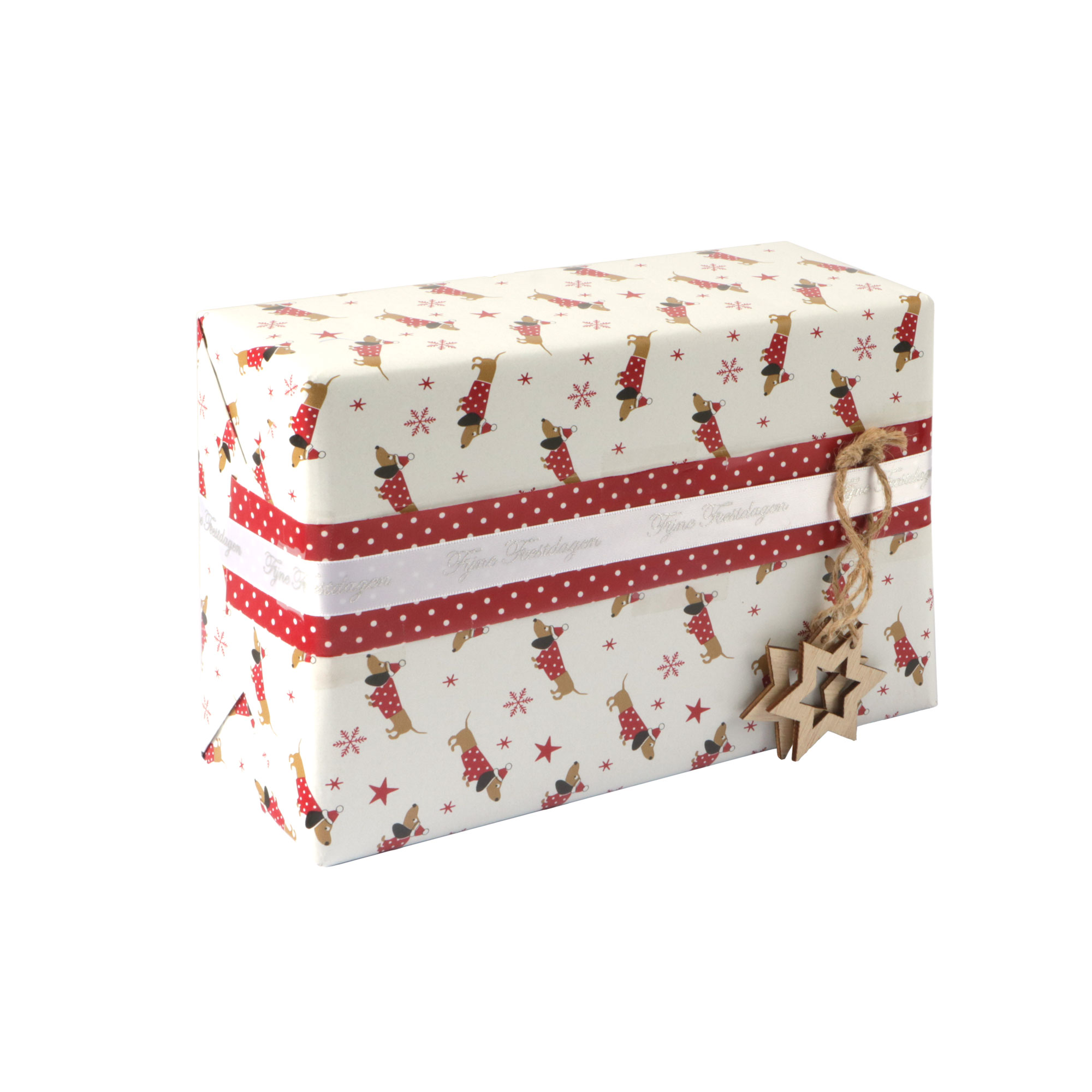 Rol kadopapier dubbelzijdig 30 cm 100 mtr Teckel / rood / wit (ucl)
