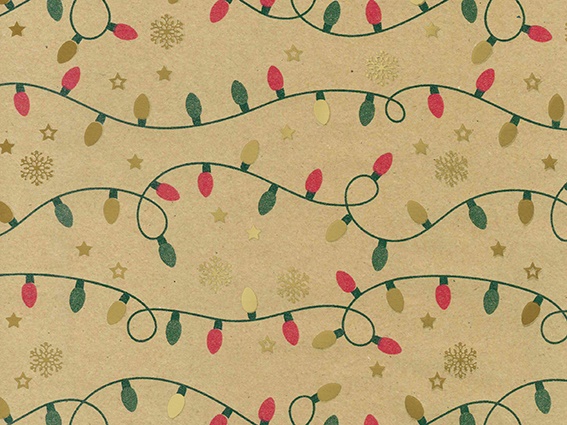Rol kerstpapier 30 cm 100 mtr feestelijke lampen (uc)