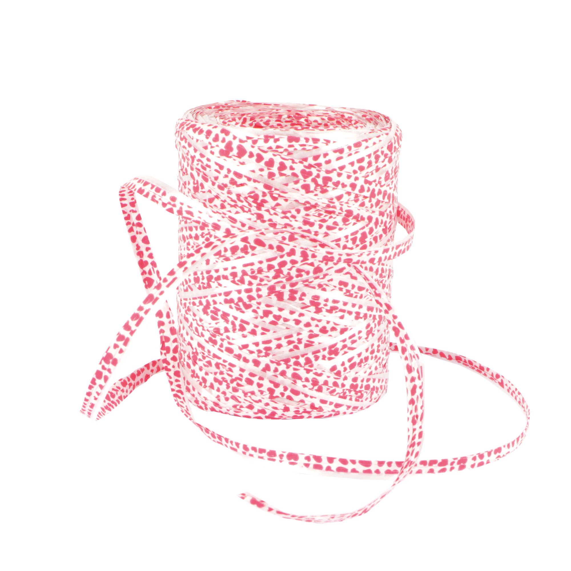 Rol krullint 10 mm 250 mtr wit met rode harten