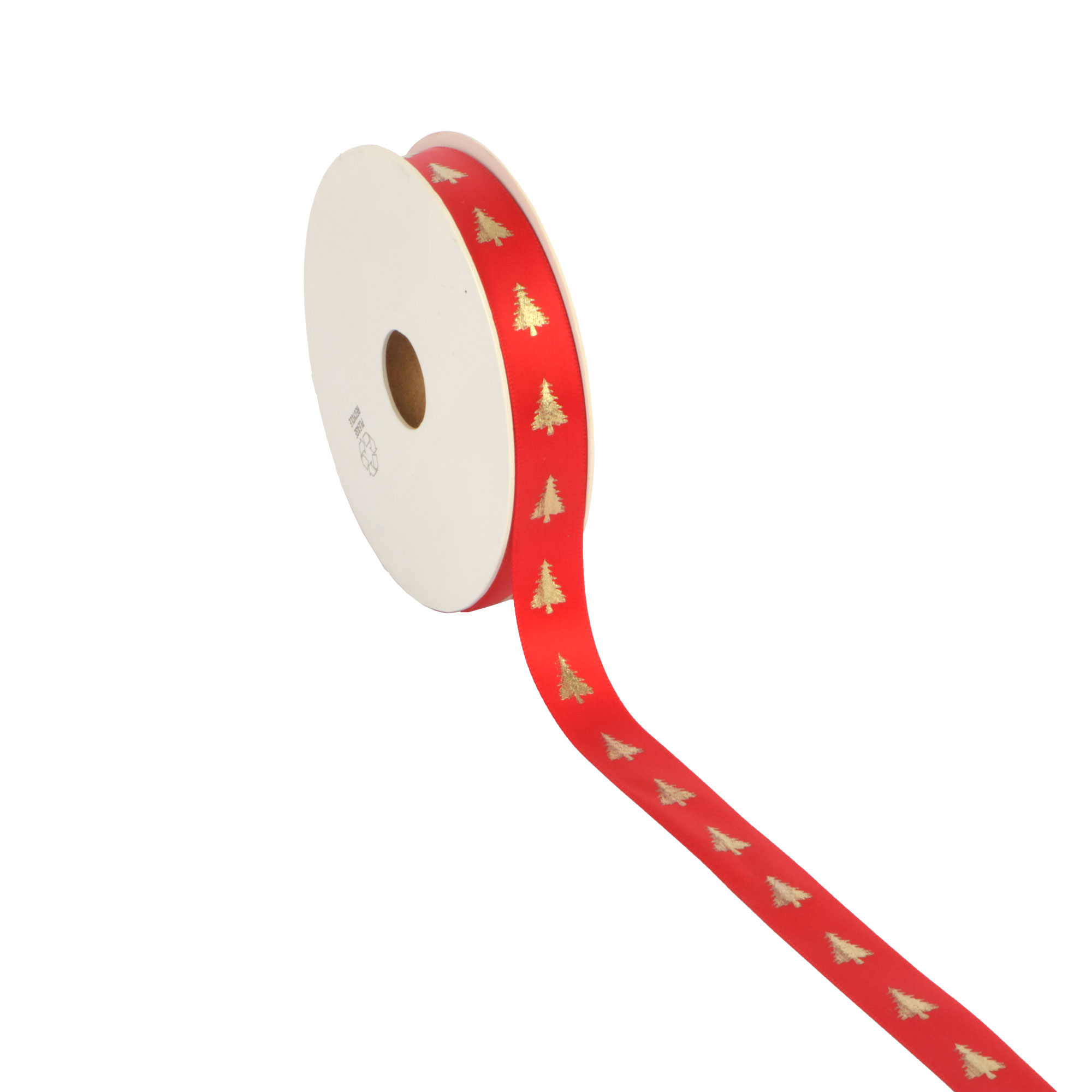 Rol satijnlint 15 mm 25 mtr Kerstboom rood (ucl)