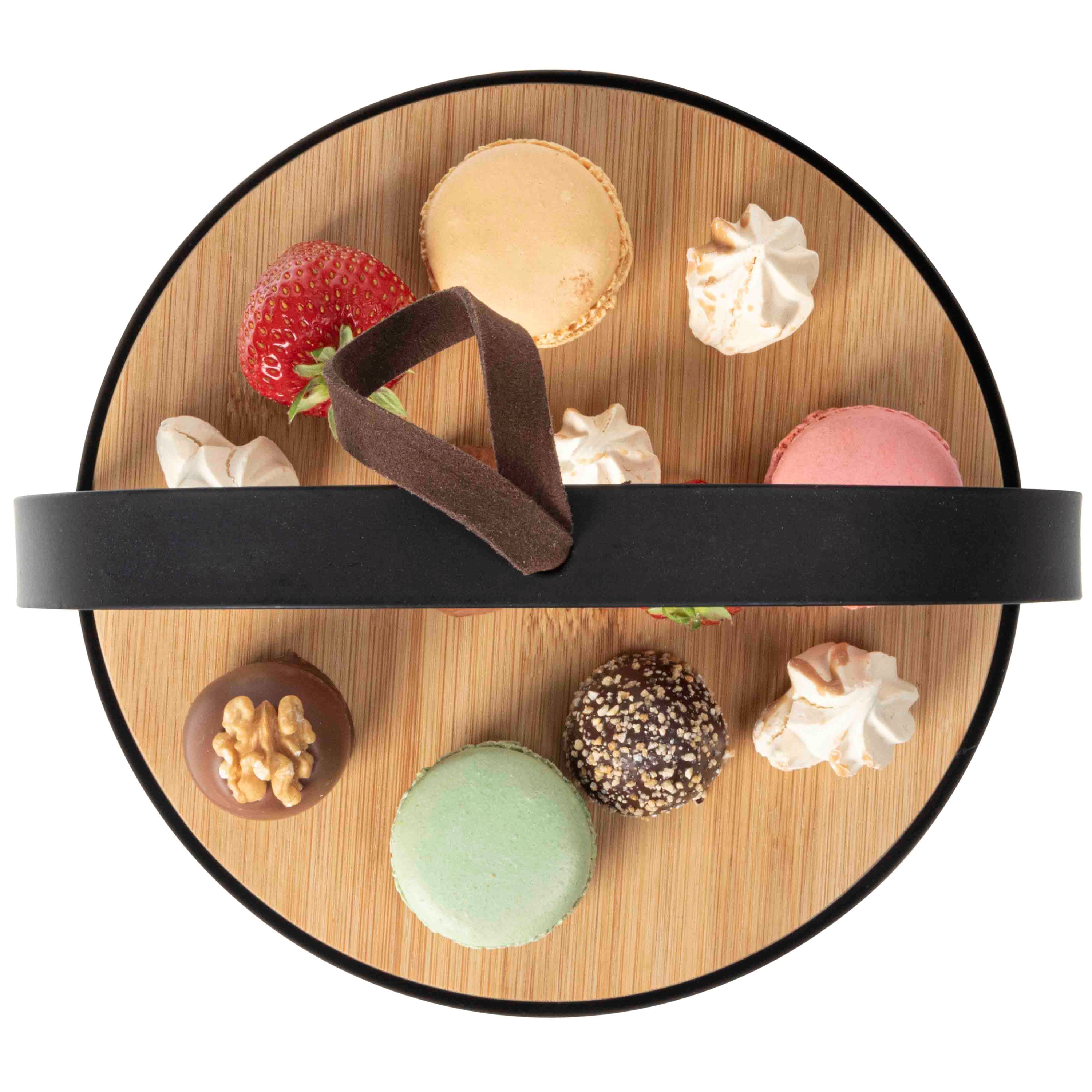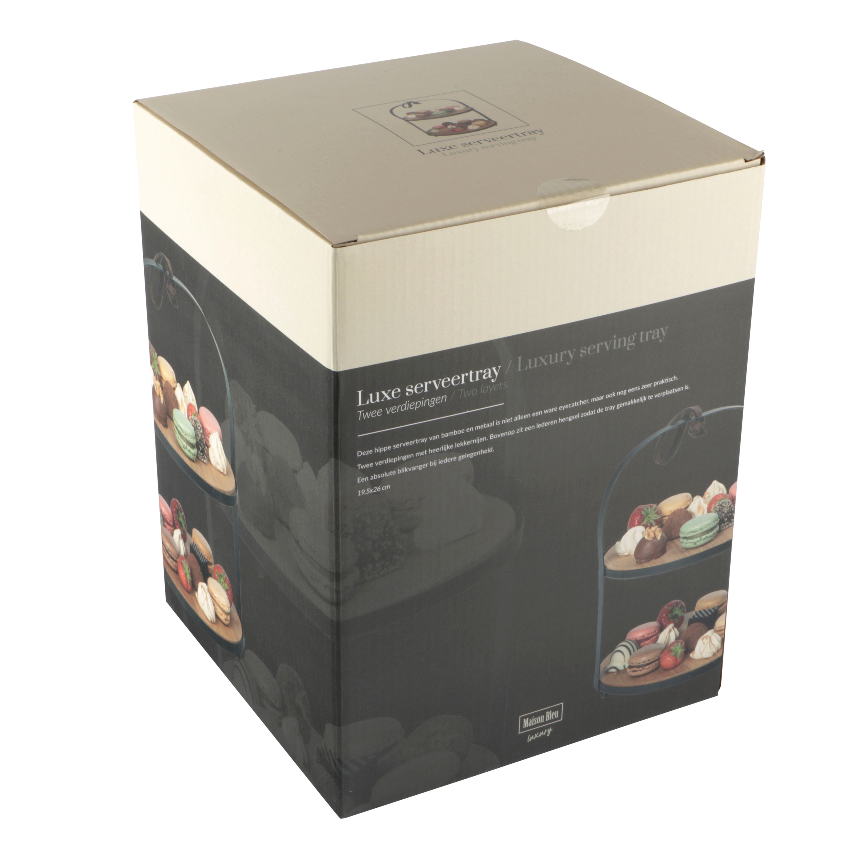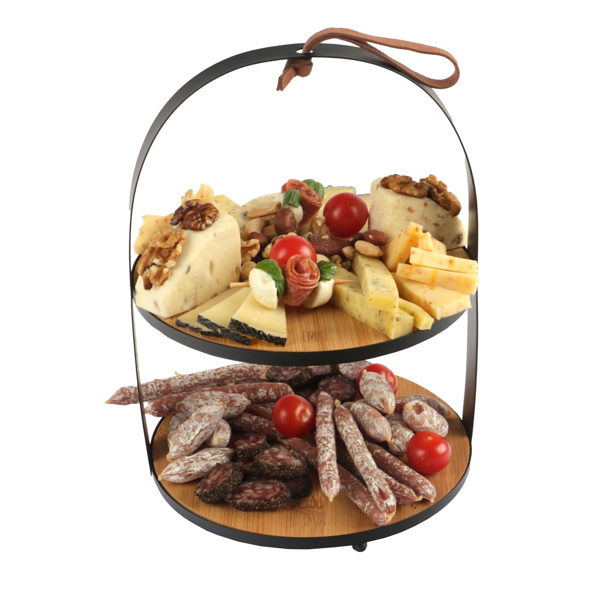 Deze hippe serveertray van bamboe en metaal is niet alleen een ware eyecatcher, maar ook nog eens zeer praktisch. Twee verdiepingen met heerlijke lekkernijen. Bovenop zit een lederen hengsel zodat de tray gemakkelijk te verplaatsen is. Een absolute blikvanger bij elke gelegenheid.