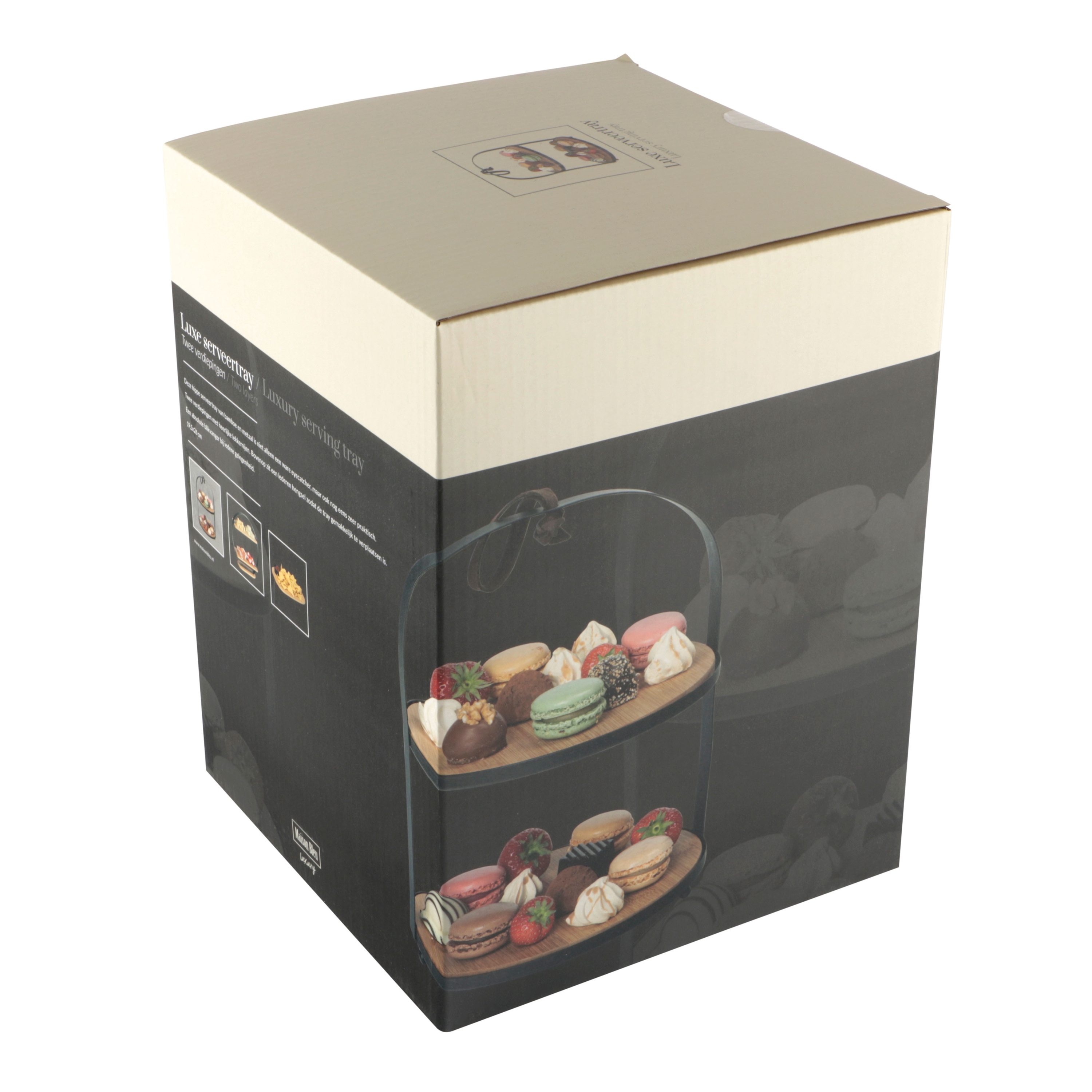 Serveertray 2 laags met bamboe plankjes rond 19,5x26 cm