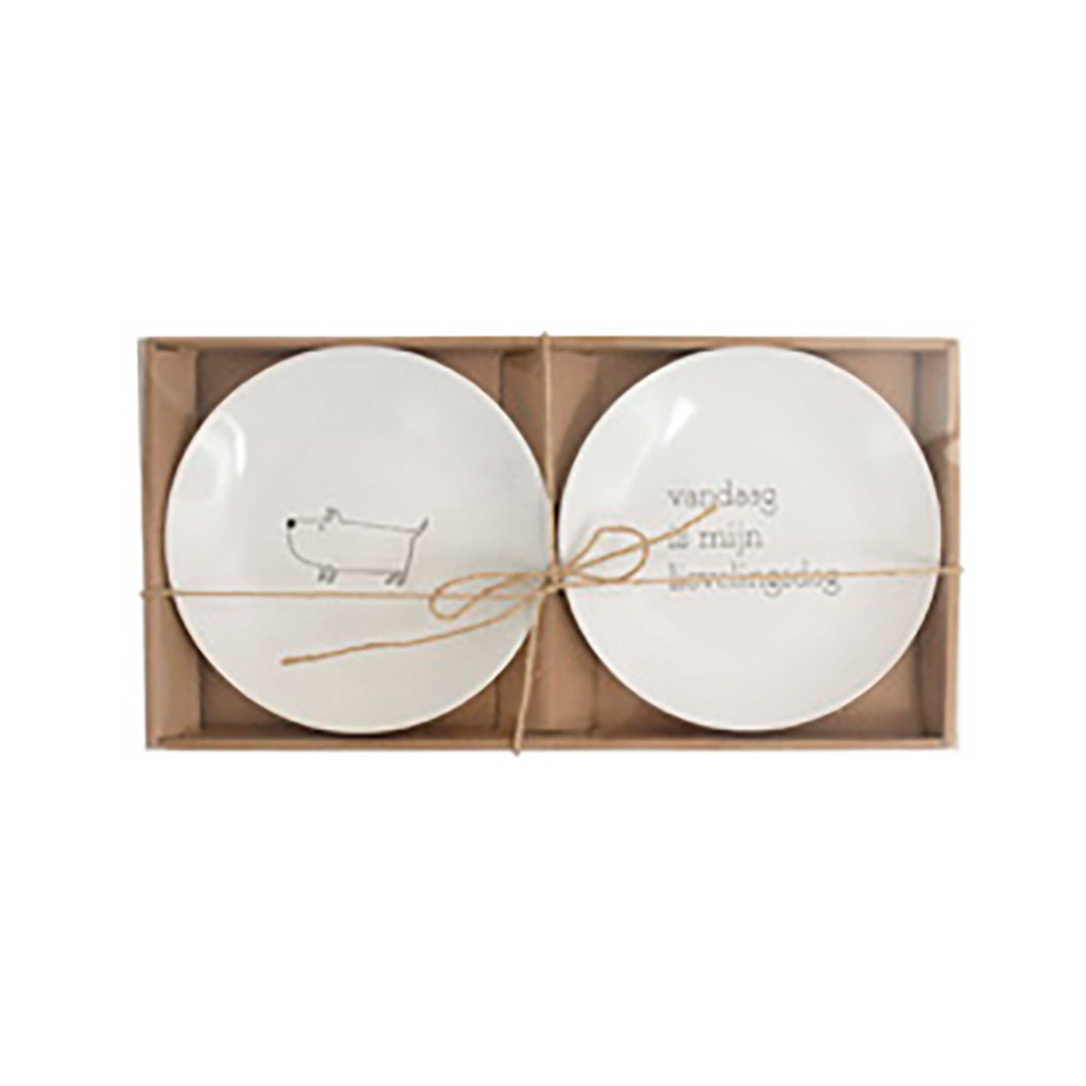 In deze leuke schaaltjes eet je je favoriete kwark, yoghurt en soep. Set van 2 stuks en voorzien van een hip croissantje en tekst Mmmm.