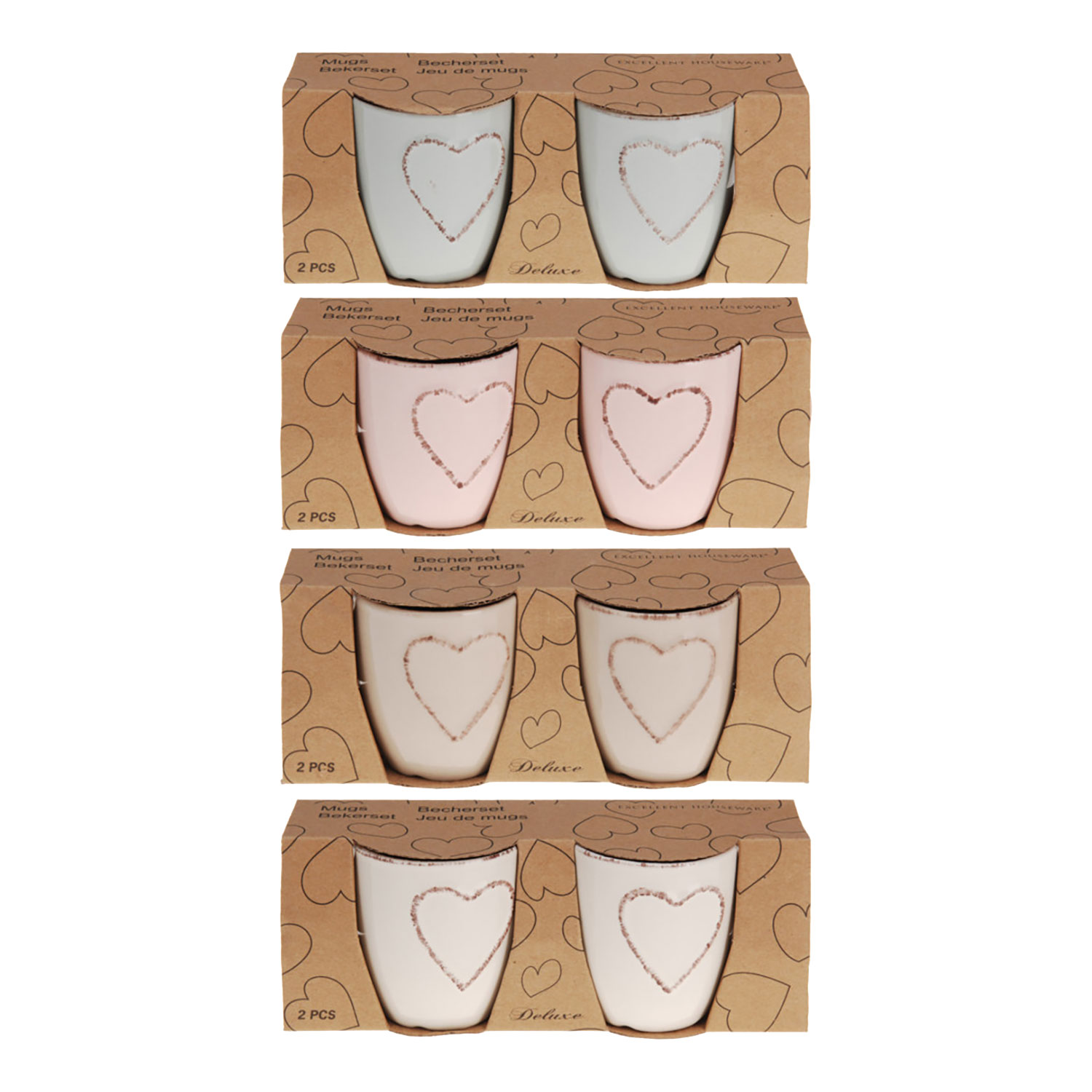 Set à 2 mokken 150 ml hart assorti