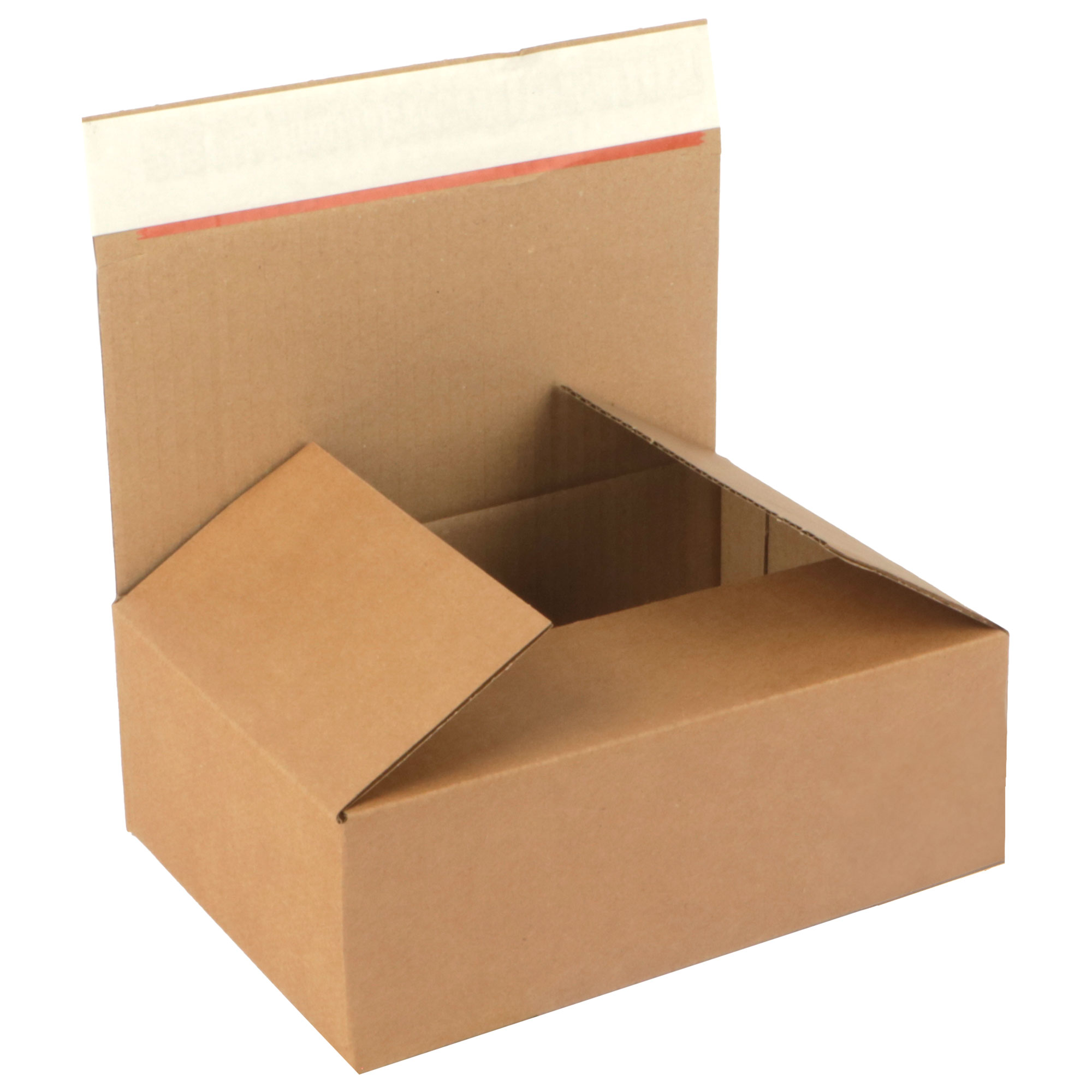 Door de autolockbodem vouwt de bodem zich automatisch tot een doos. De bovenkant is voorzien van een plakstrip om de doos te sluiten, dus tape is niet nodig.