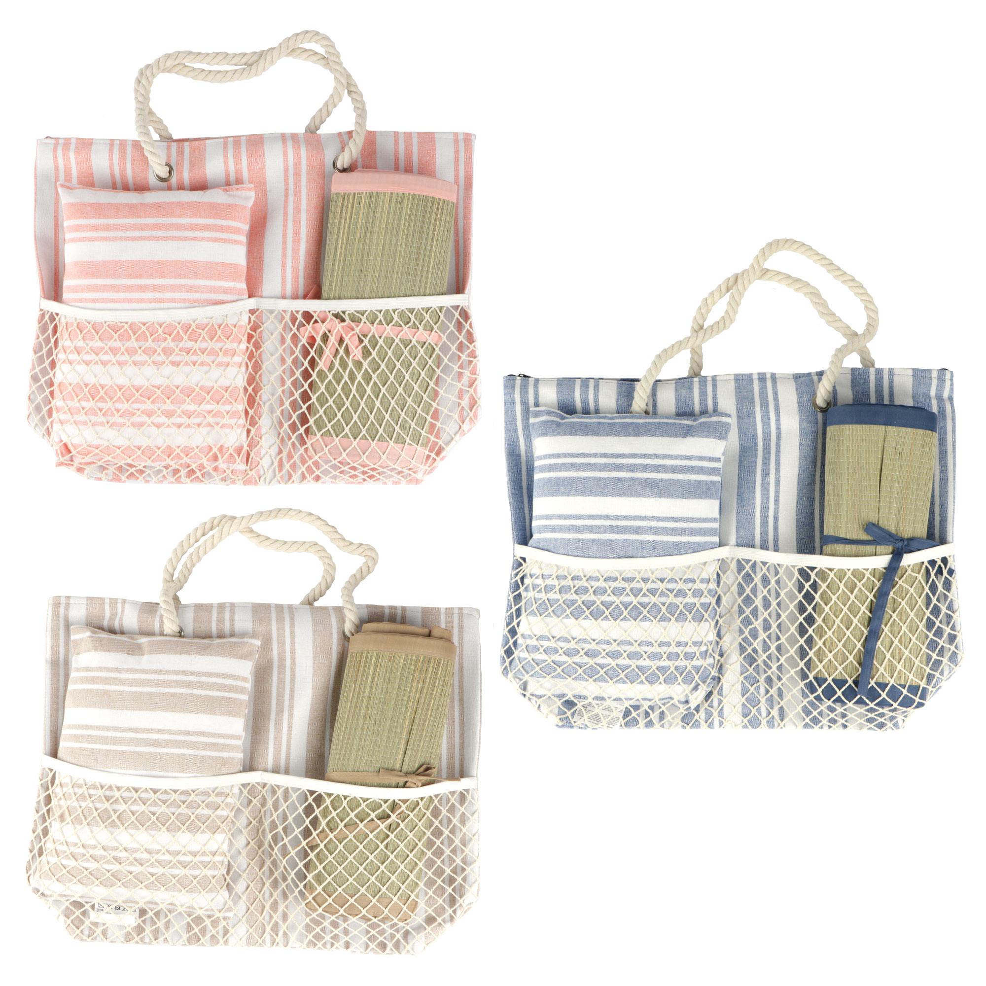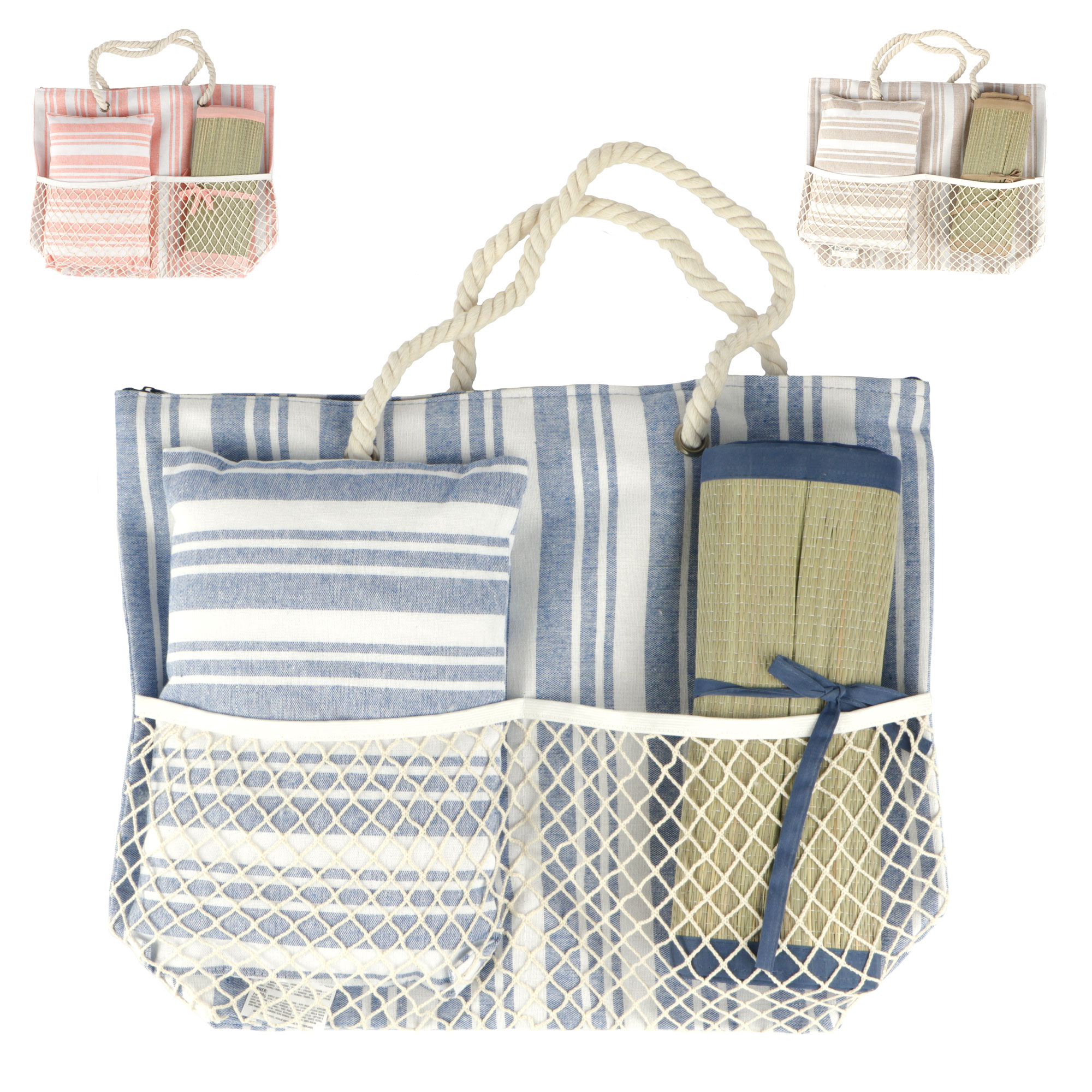 Strandtas 51+22,5x31 cm met strandmat en kussen assorti kleuren (uc)