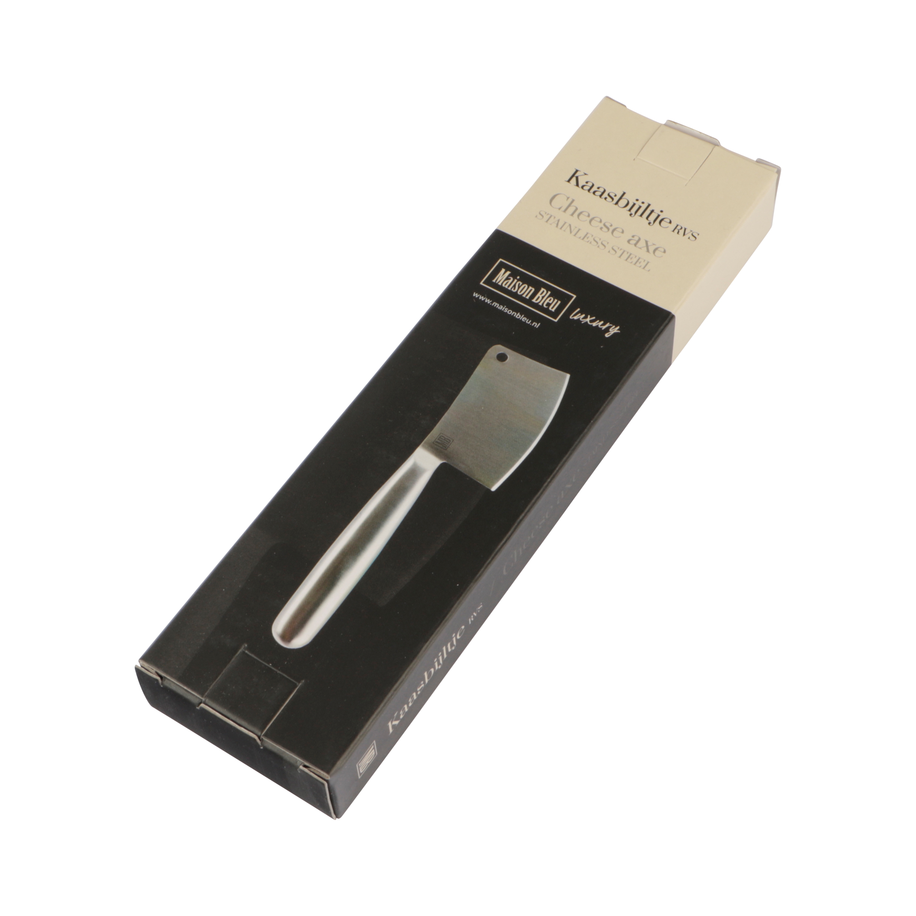 Dit kaasbijltje geheel van RVS met een handgreep die goed in de hand ligt voor het snijden van kaas.