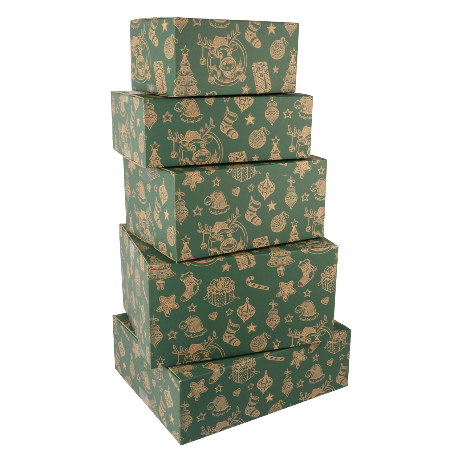 Kerstdoos A140 rendier 31x20x14 cm groen