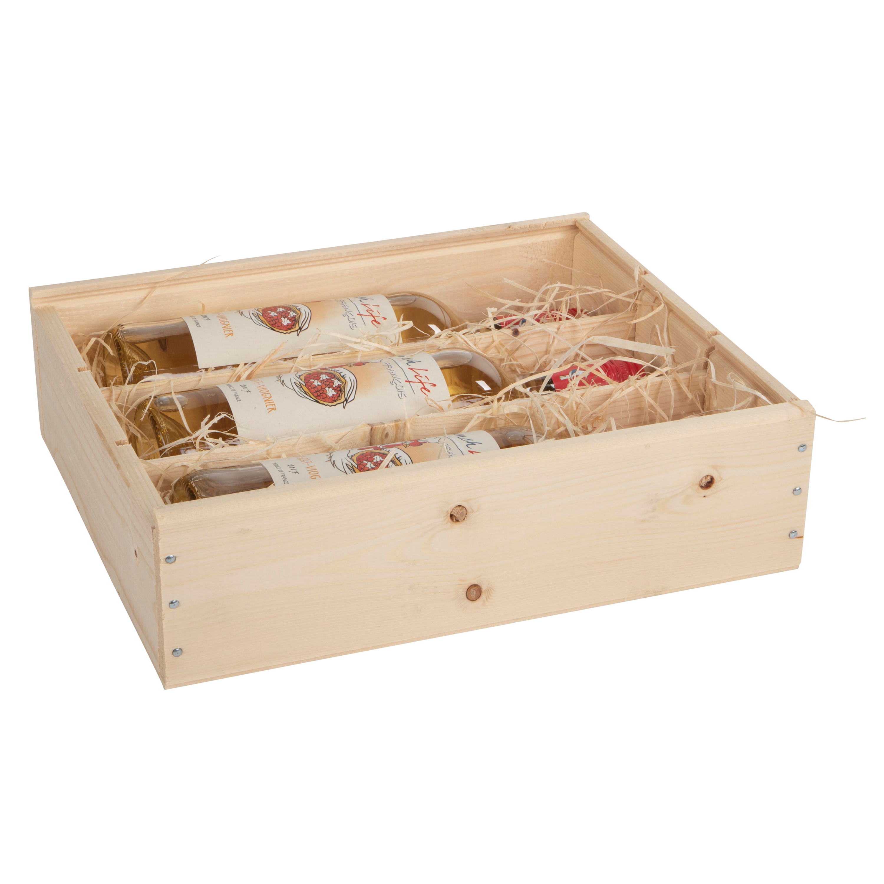 Het hout voor het verwerken van deze wijnkisten komt uit Scandinavië. Het wordt geproduceerd in zogenaamde productiebossen.