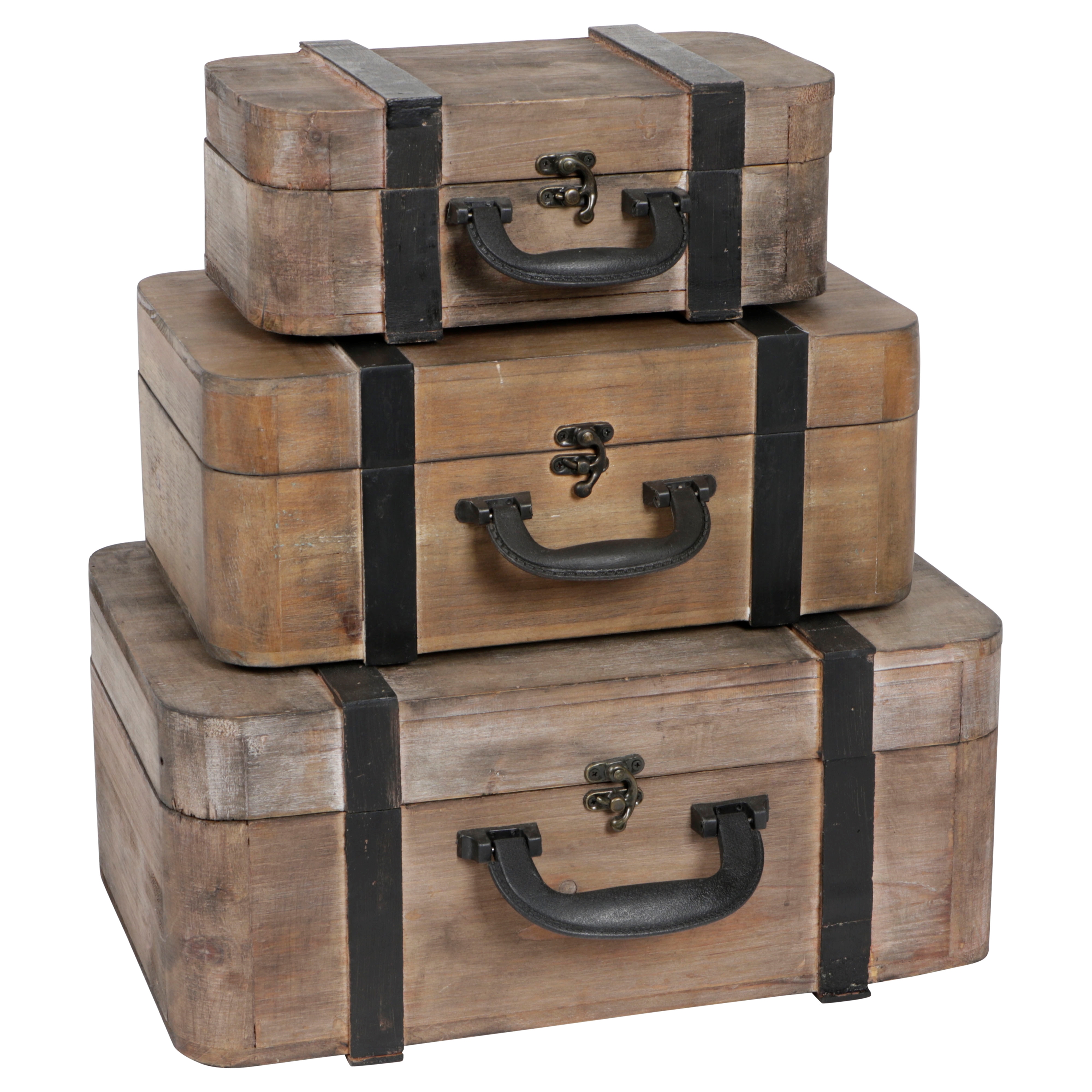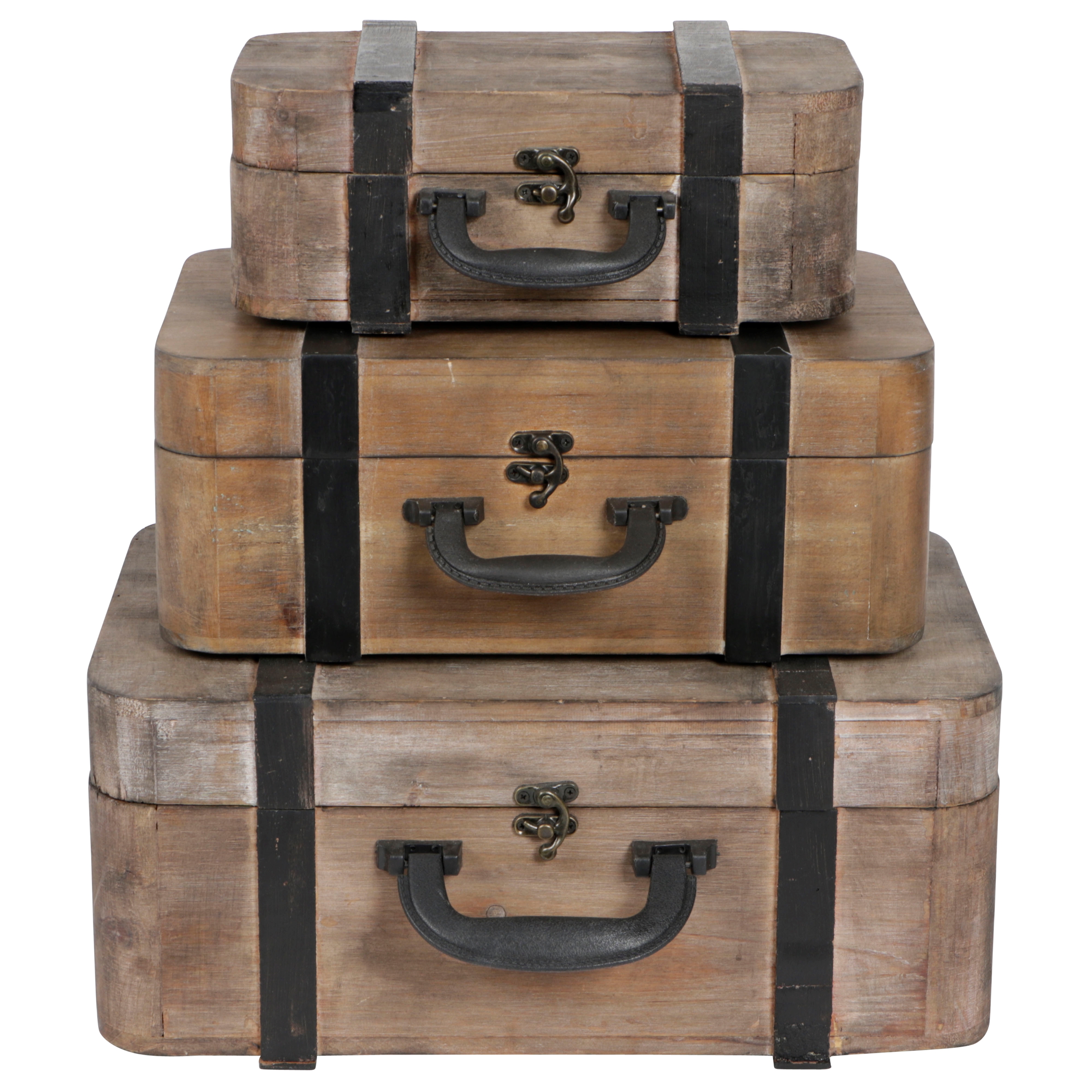 White wash houten koffer met een onbehandelde deksel. De koffers zijn te gebruiken ter decoratie of om spulletjes op te bergen. Te verkrijgen in 3 maten.