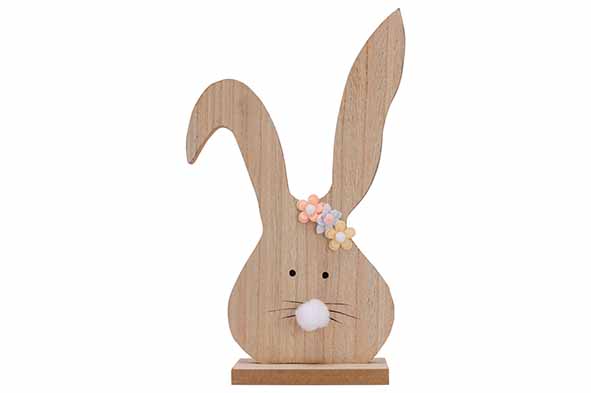 Konijn met bloemen staand hout 17,5x4,2x29 cm (uc)