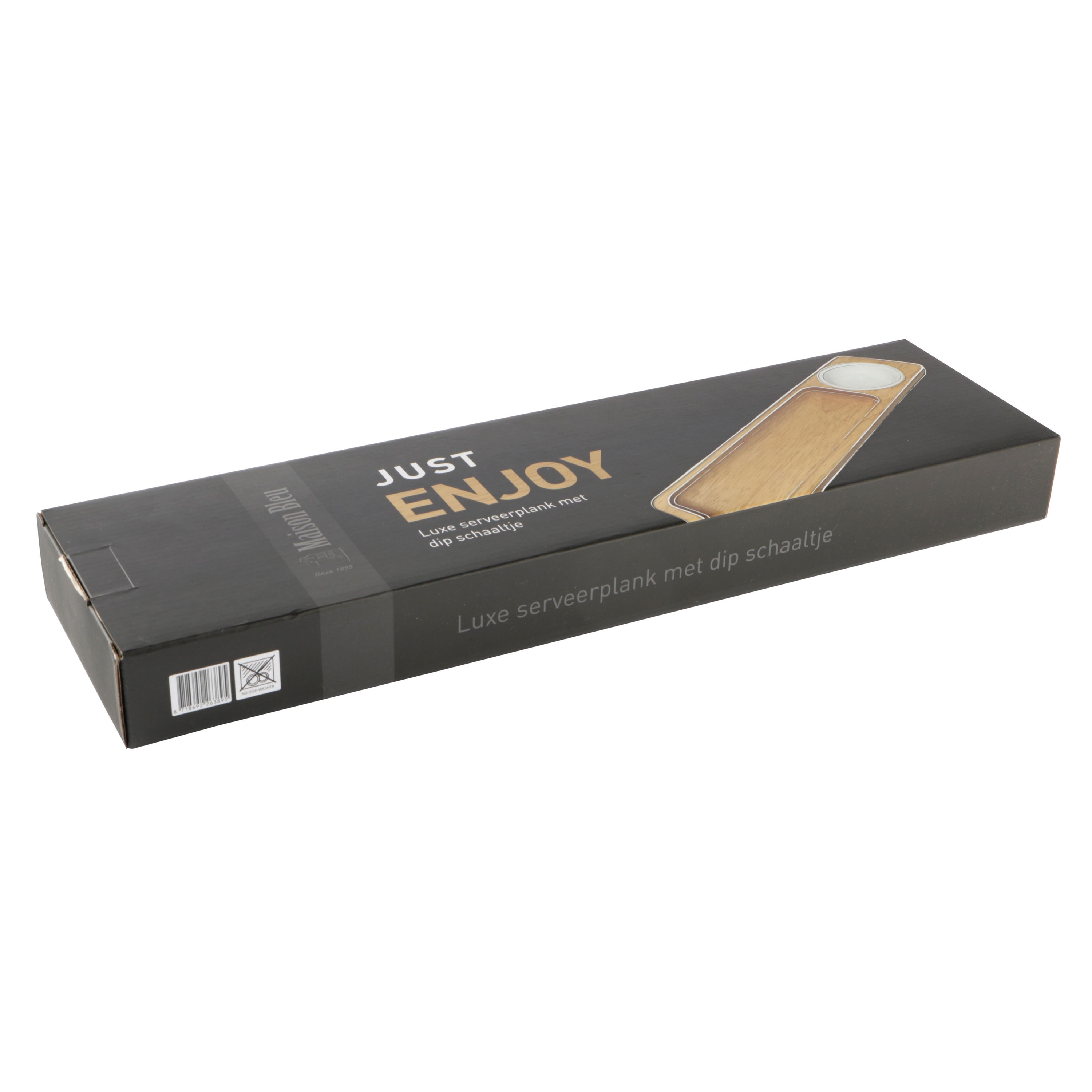 Luxe serveerplank 48,5x12,5x4 cm met dip schaaltje (uc)