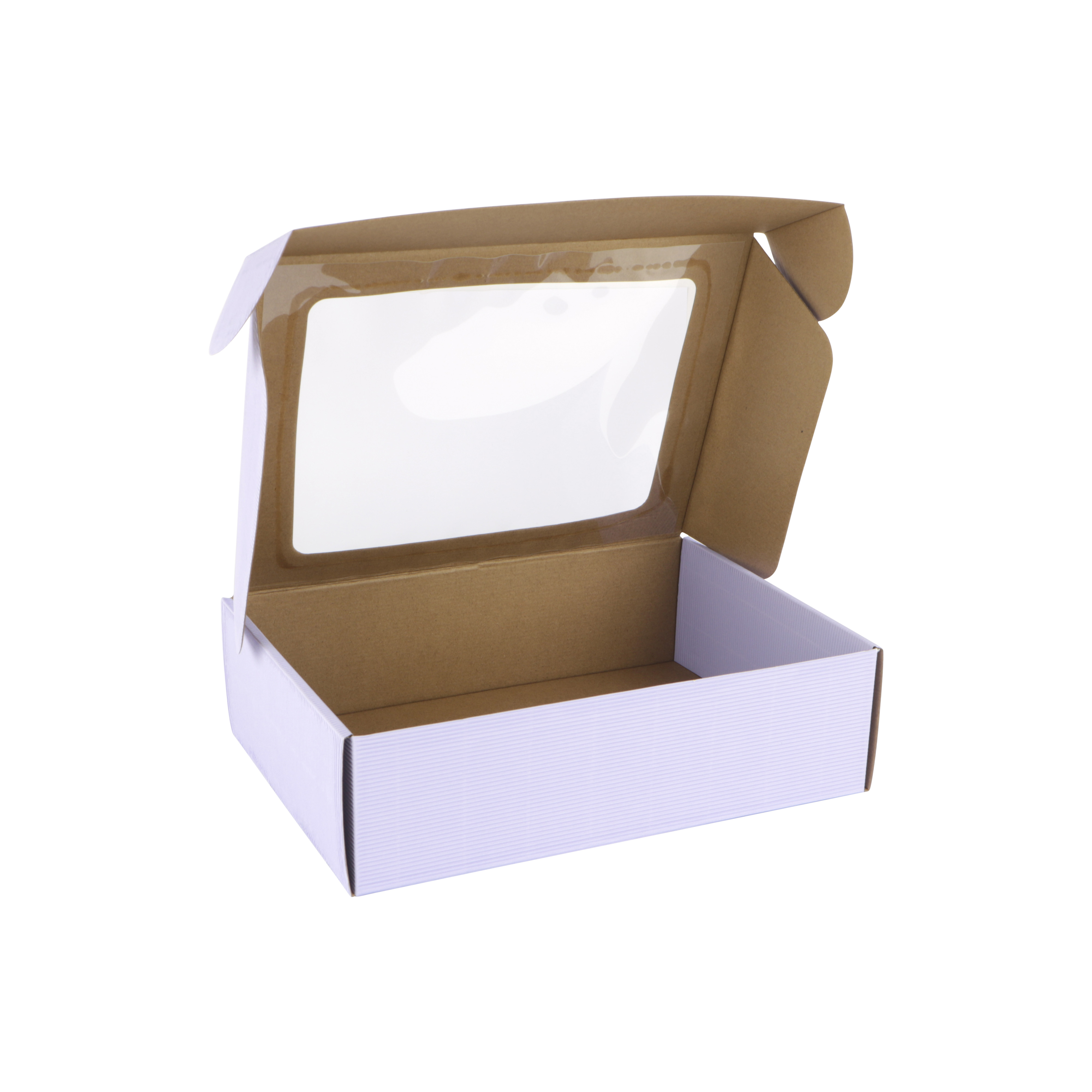 Shrink pack à 10 window boxes 30.5x21x8.5 cm open corrugated kraft paper