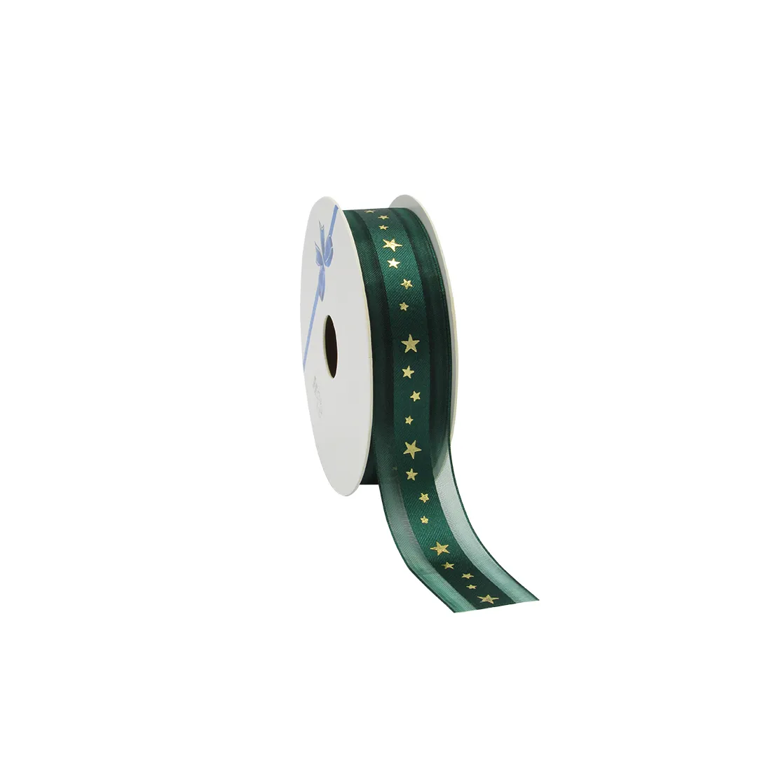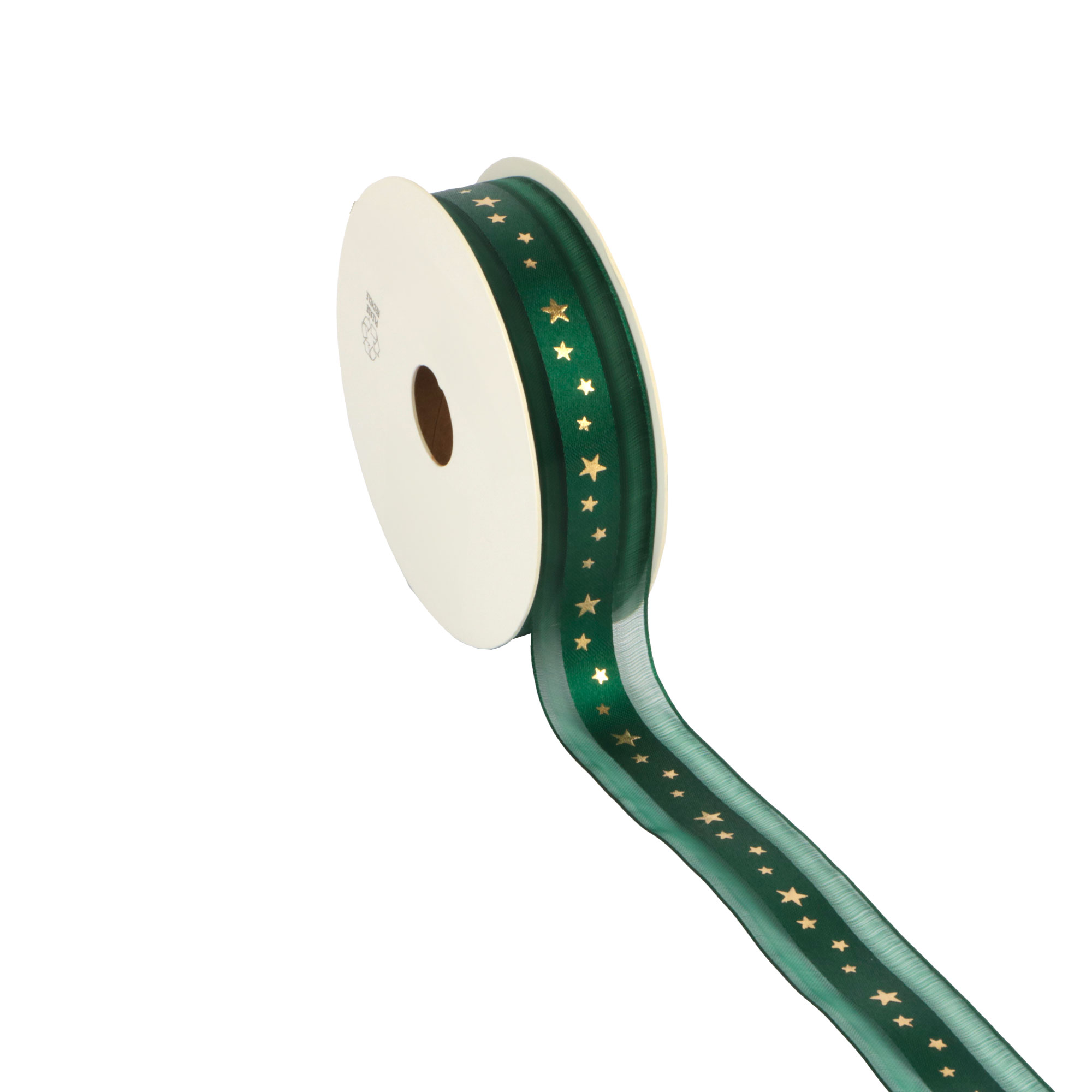 Rol lint organza met satijn 25 mm 20 mtr Stars groen