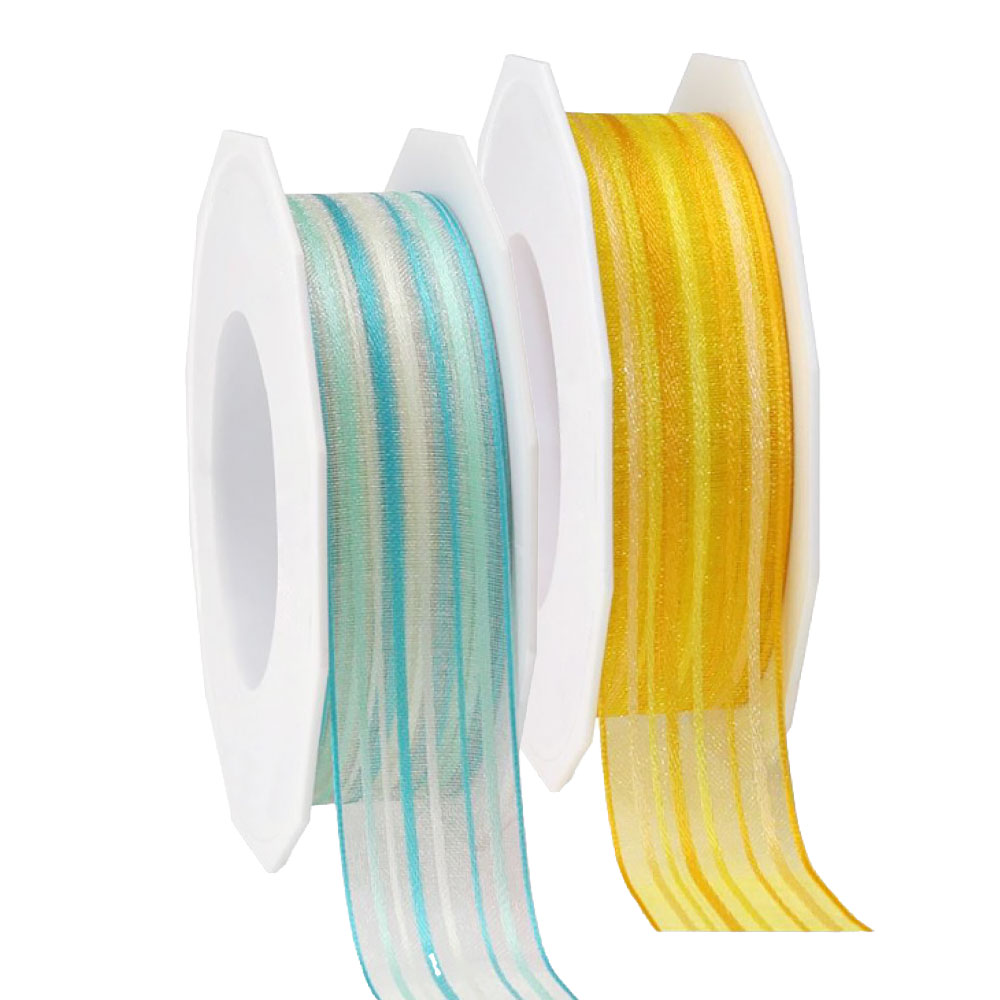 Rol organzalint 25 mm 20 mtr turquoise gestreept