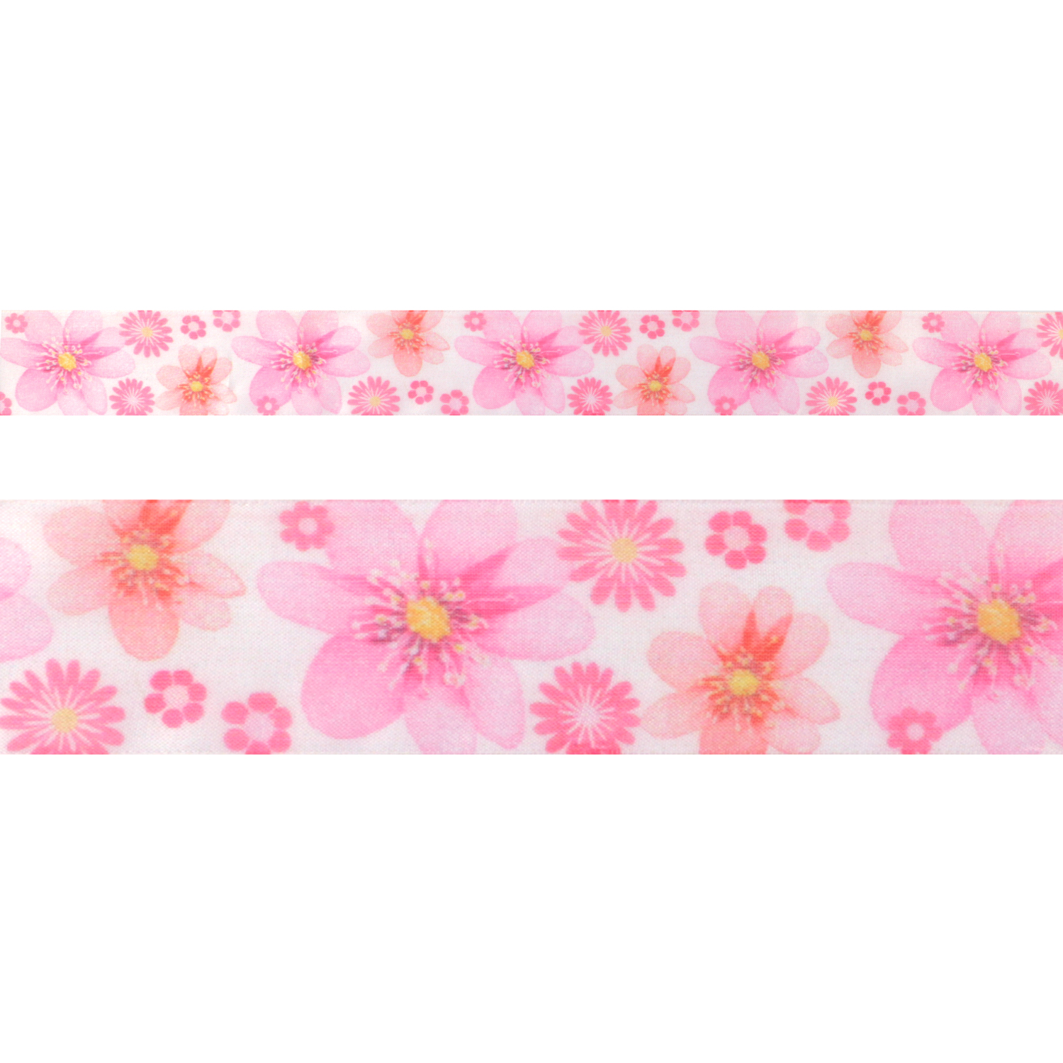 Rol organzalint 40 mm 15 mtr aquarelbloem roze
