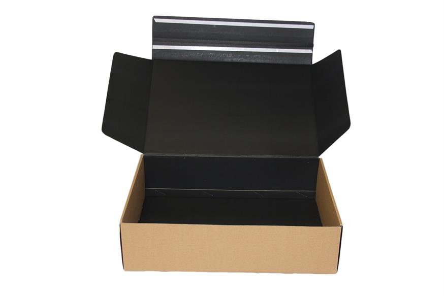 Deze webshop verzenddoos is aan de binnenzijde 100% zwart bedrukt. De doos is voorzien van twee plakstrips en een afscheurrand. Je gebruikt de buitenste plakstrip om de doos te sluiten. De klant opent de doos dmv het lostrekken van de perforatiestrip. De tweede plakstrip kan de klant gebruiken als de doos gebruikt wordt voor een retourzending.