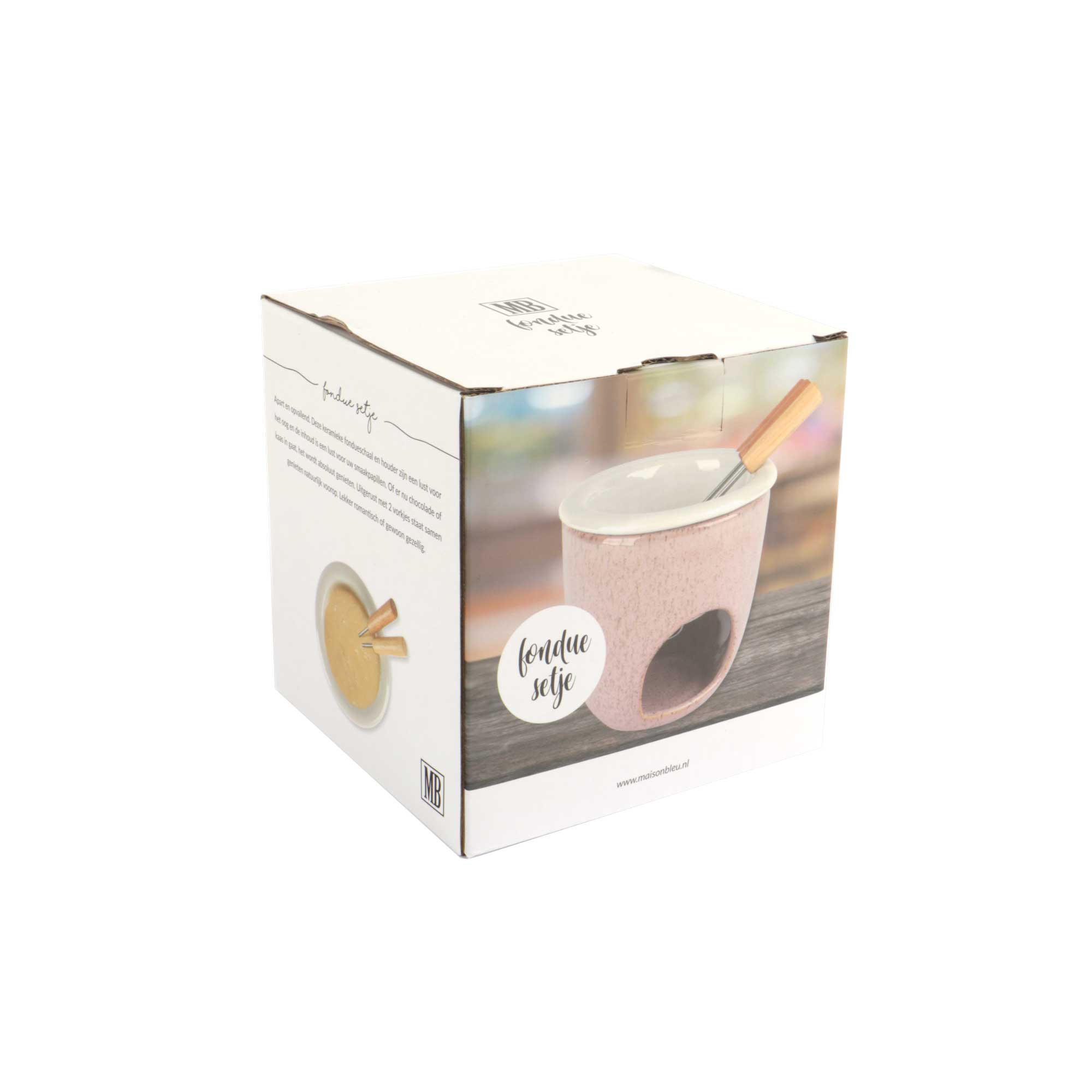 Mooie stijlvolle, oudrose fonduesetje voor 2 personen. Lekker samen genieten van een heerlijke cholade- of kaasfondue.