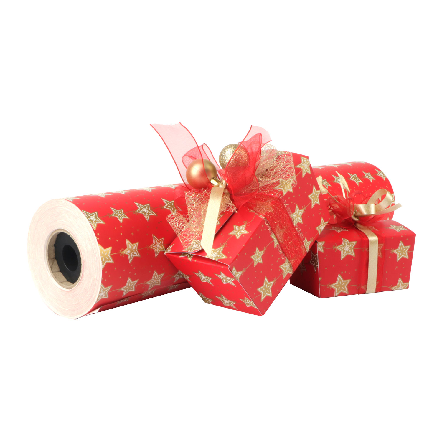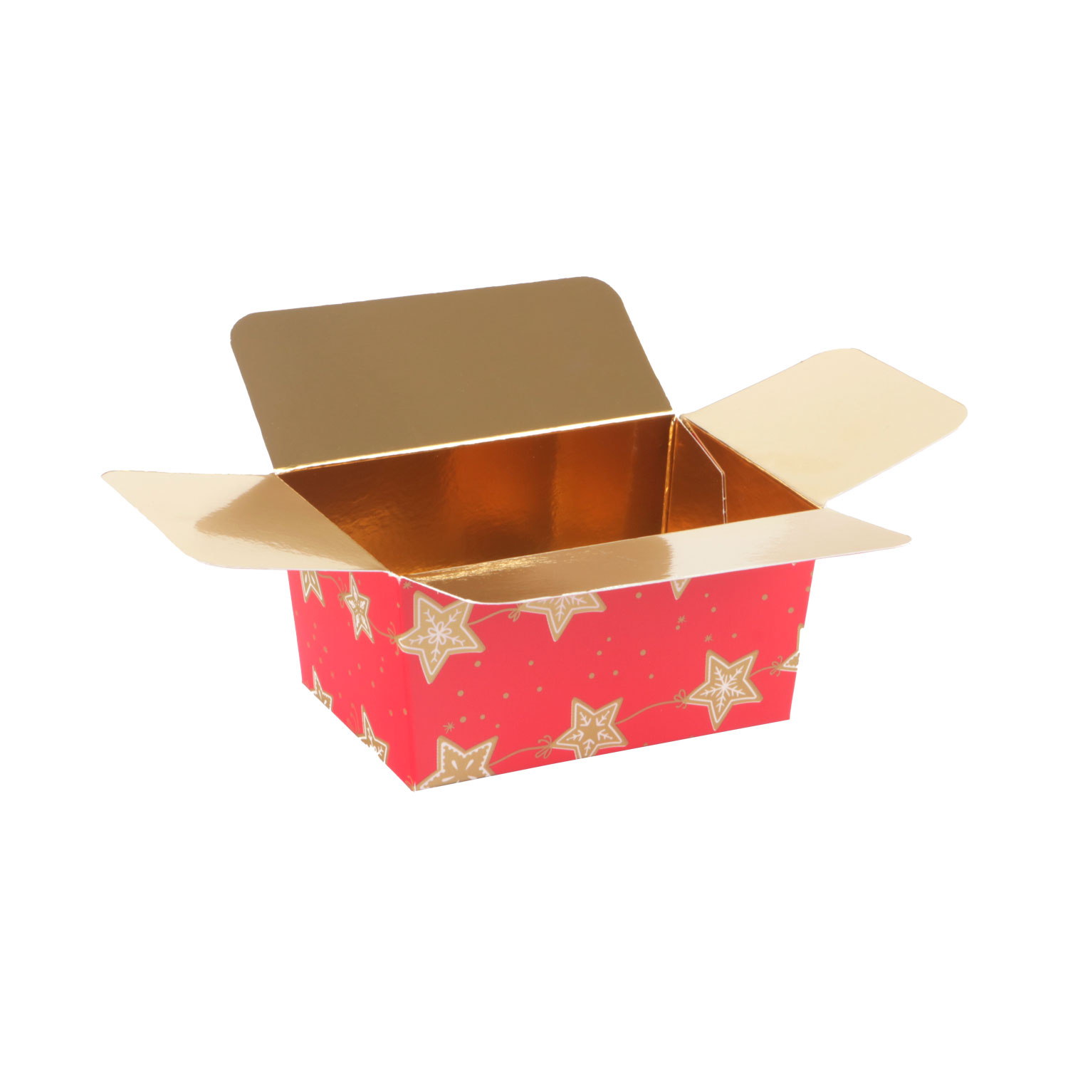 Pak à 24 luxe bonbondoos 250 gram laag sterren rood/goud