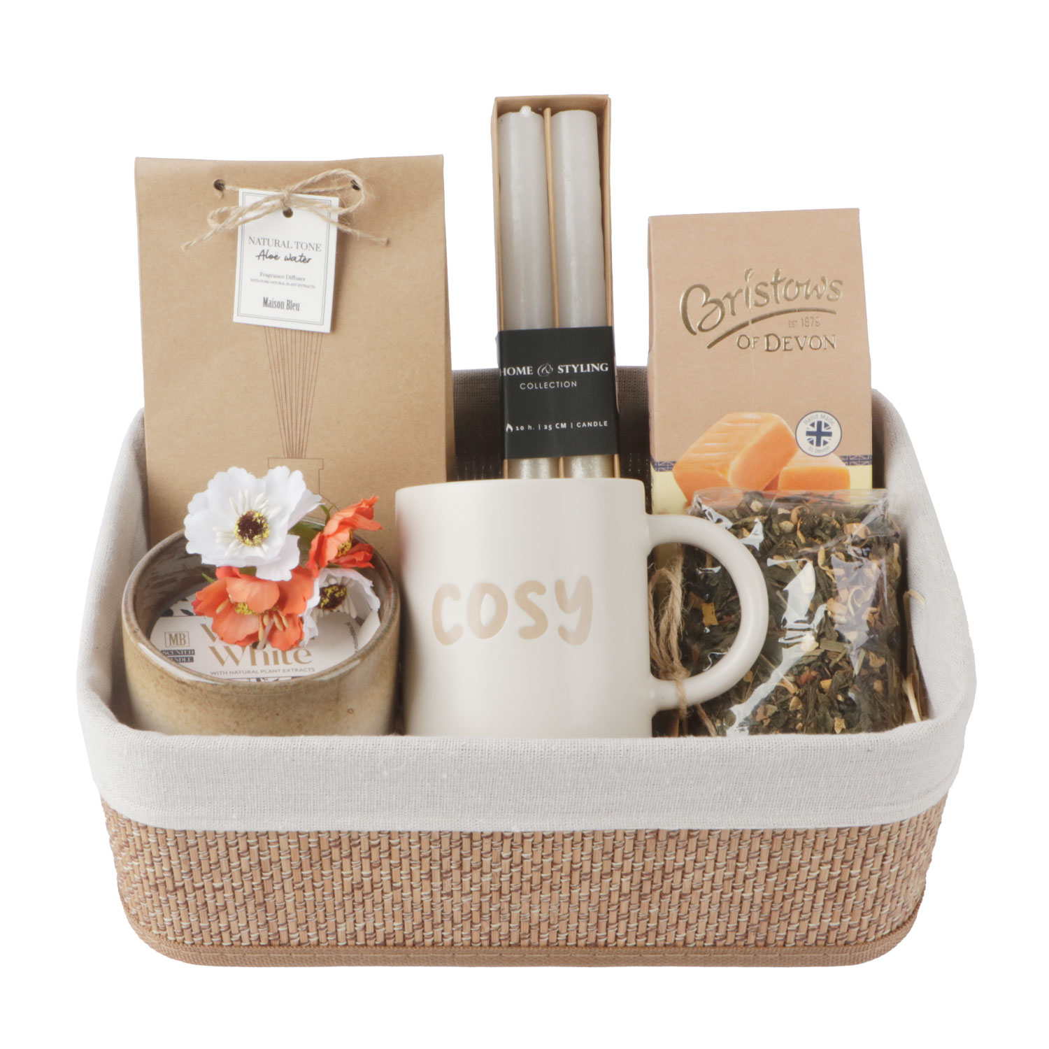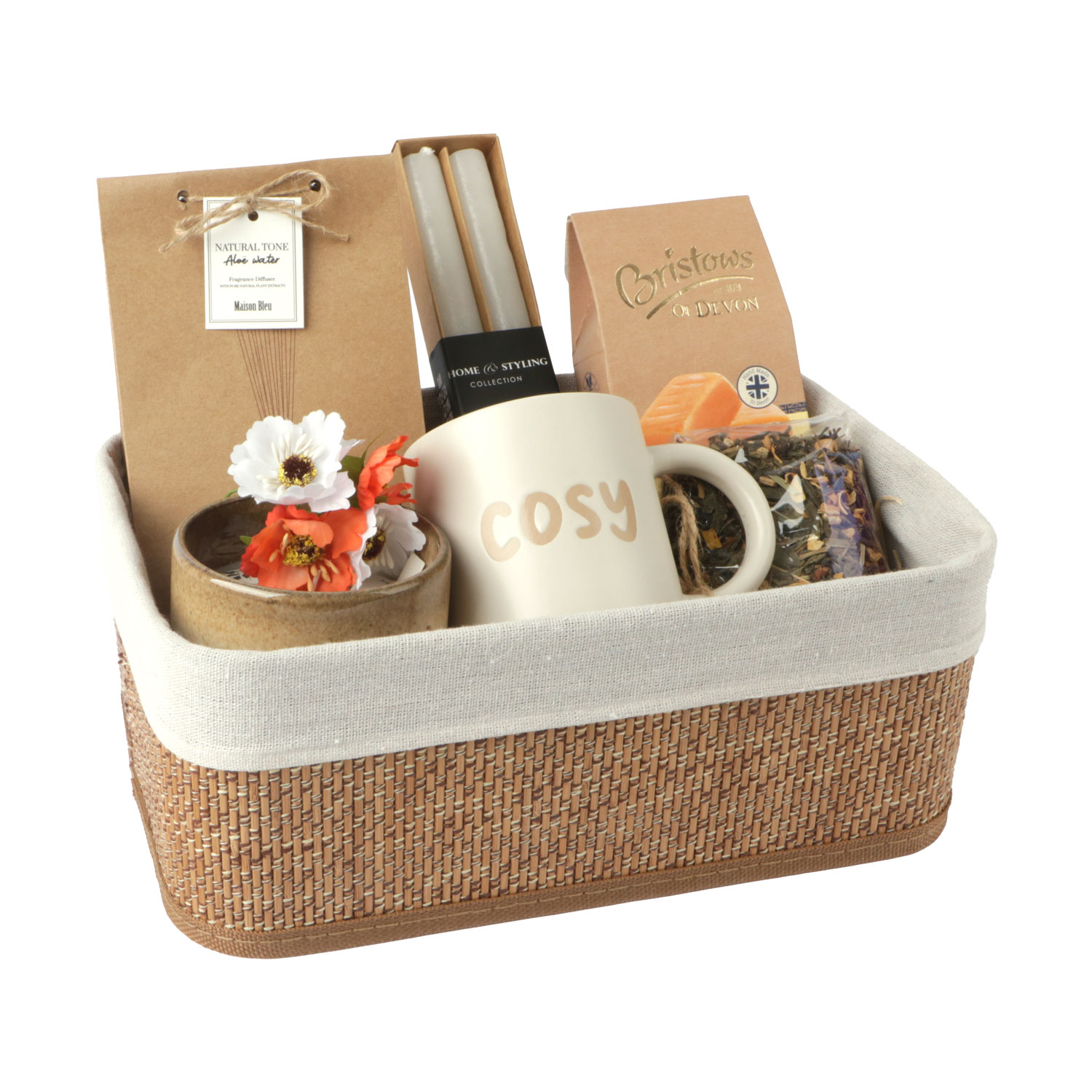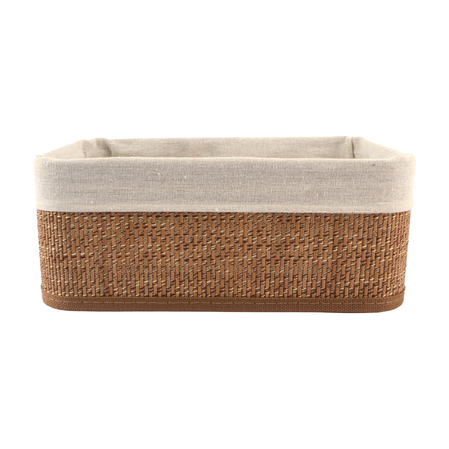 Bamboe mand met MDF bodem en gevoerd met beige voering van 70% polyester + 30% katoen