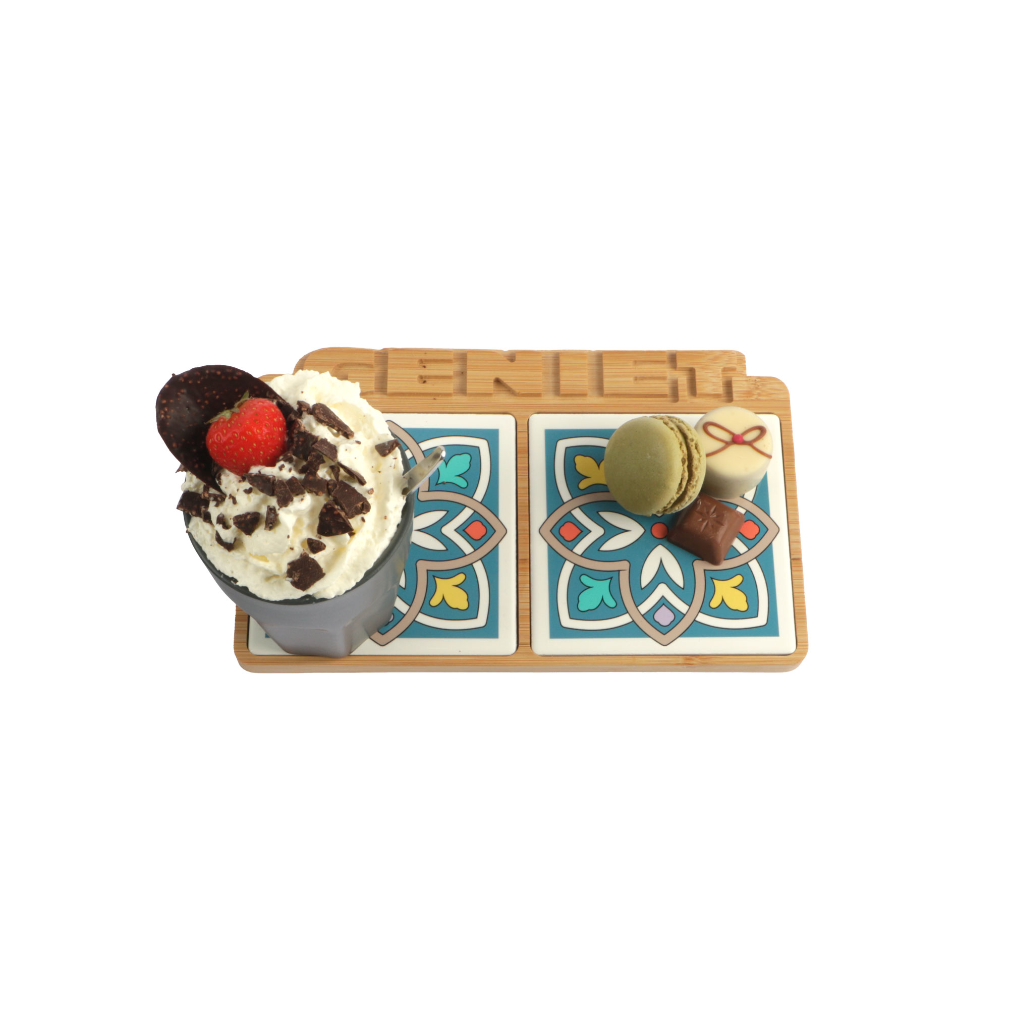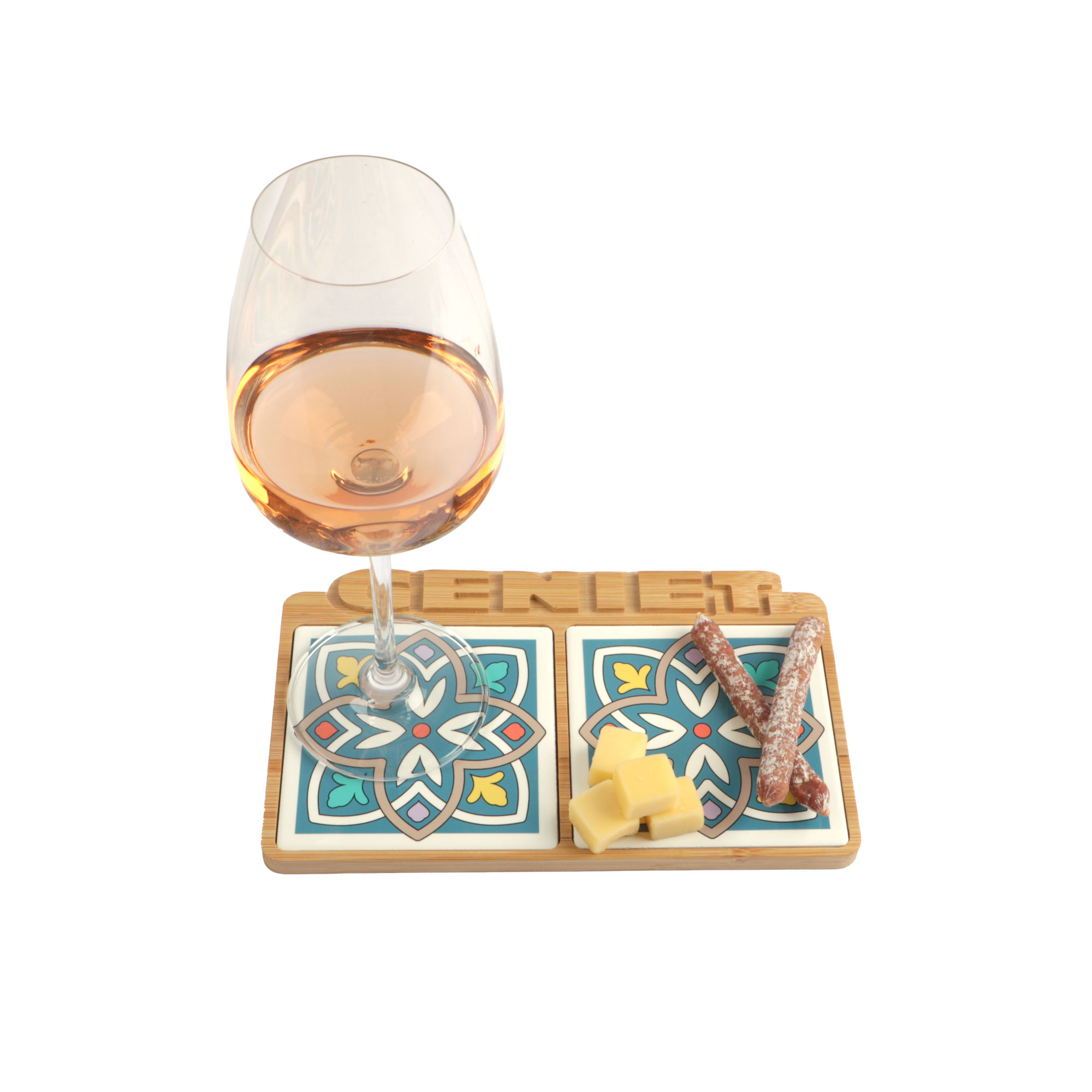 Bamboe plank 22x13,5x1 cm met keramiek tegels Geniet