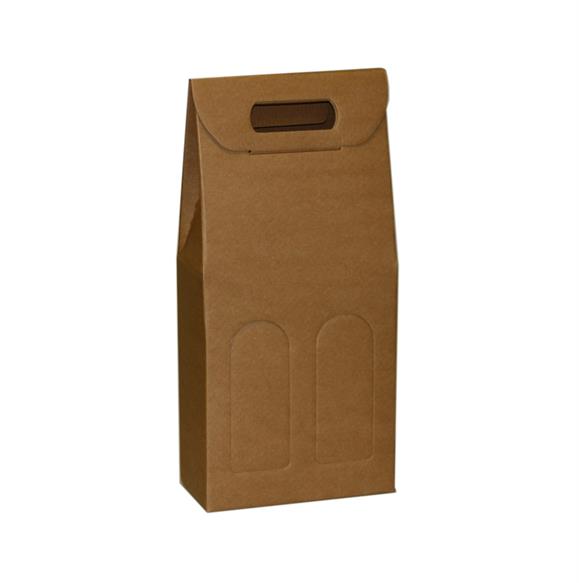 Draagkarton 2 fles 18x9x38,5 cm effen kraft Havana