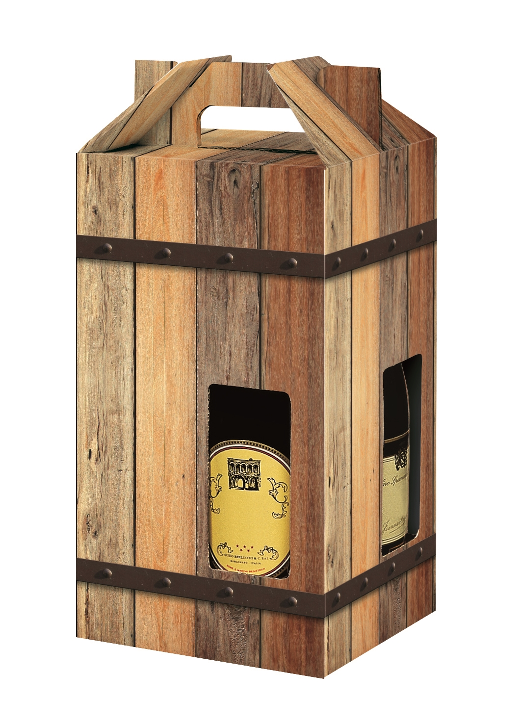 Draagkarton 4 fles Rovere 18x18x33 cm inw. met venster (ucl)