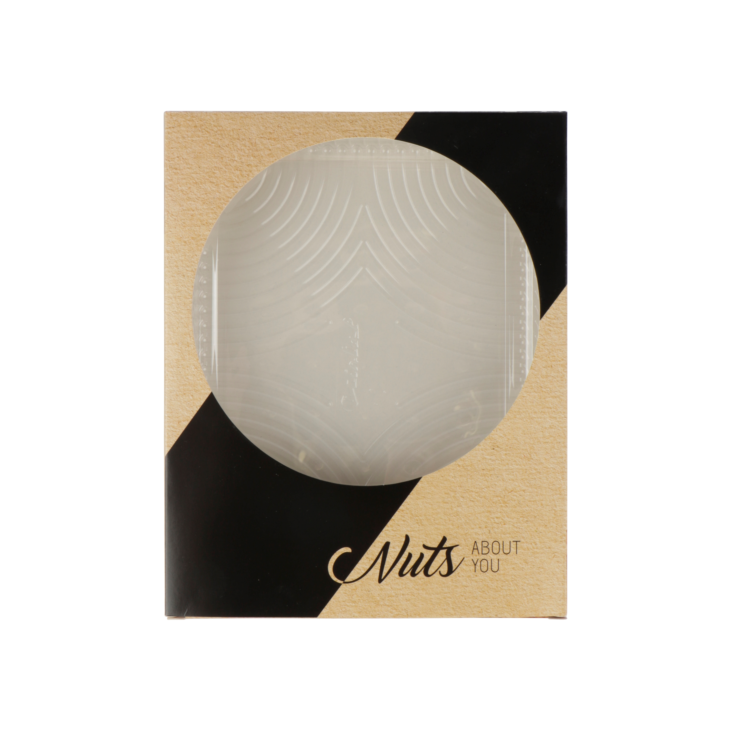Een transparant APET binnenbakje dat gevuld kan worden met uw producten, en een kartonnen doosje met een gestanst venster.