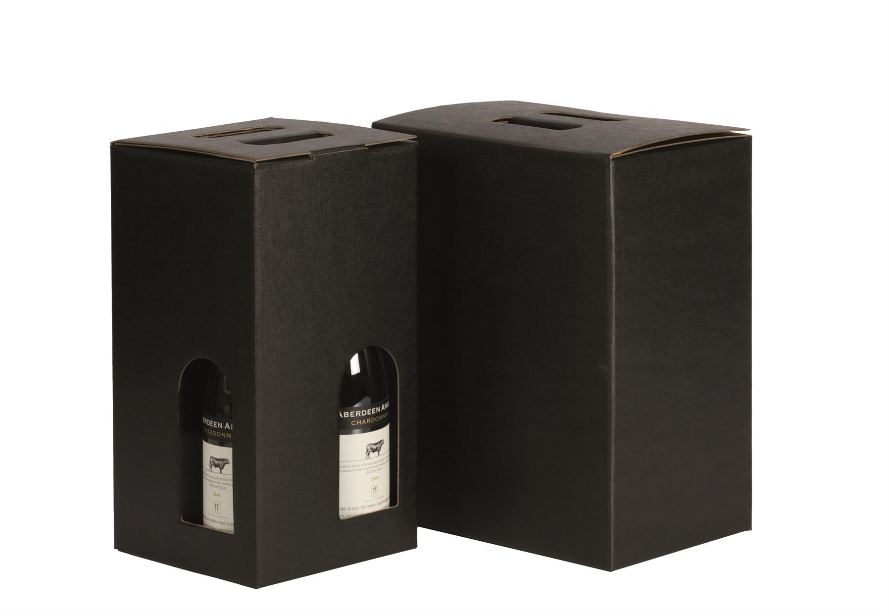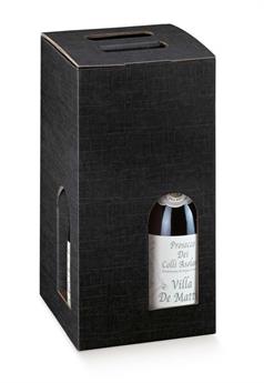 Draagkarton 1 fles zwart met venster 9x9x38,5 cm