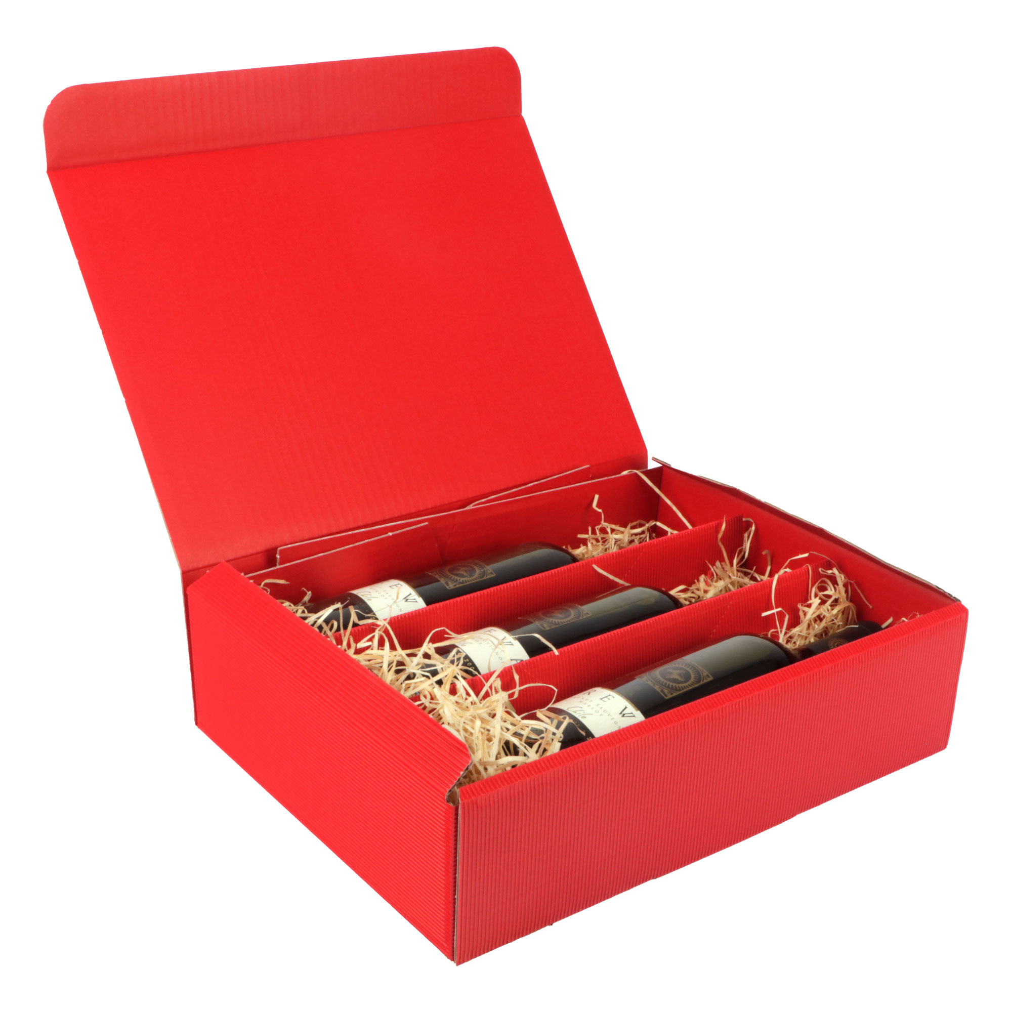 Ds à 25 geschenkdoos 3 fles 36x25x9 cm open golf rood