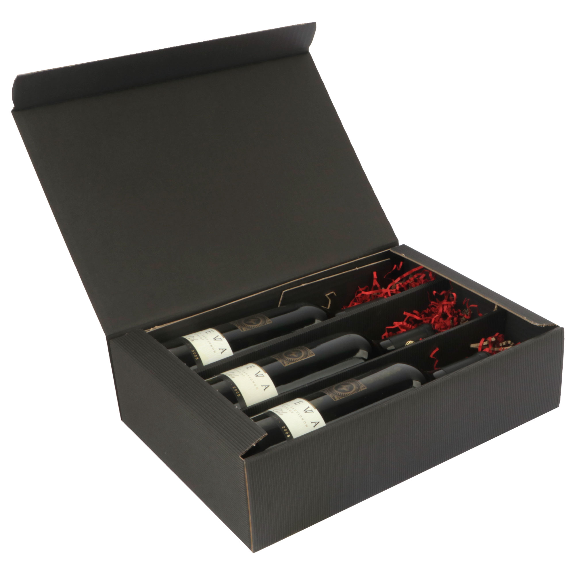 Ds à 25 geschenkdoos 3 fles 36x25x9 cm open golf zwart