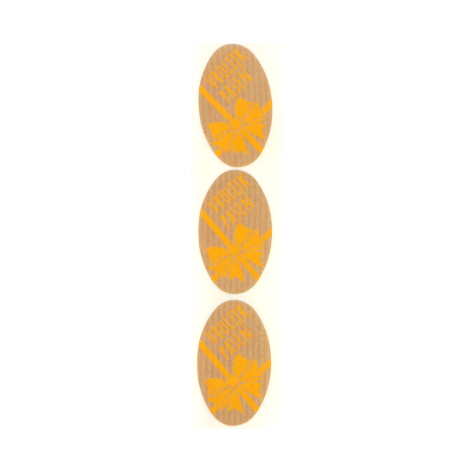 Ds à 250 kado etiket ovaal 2,7x4,6 cm kraft geel Vrolijk Pasen