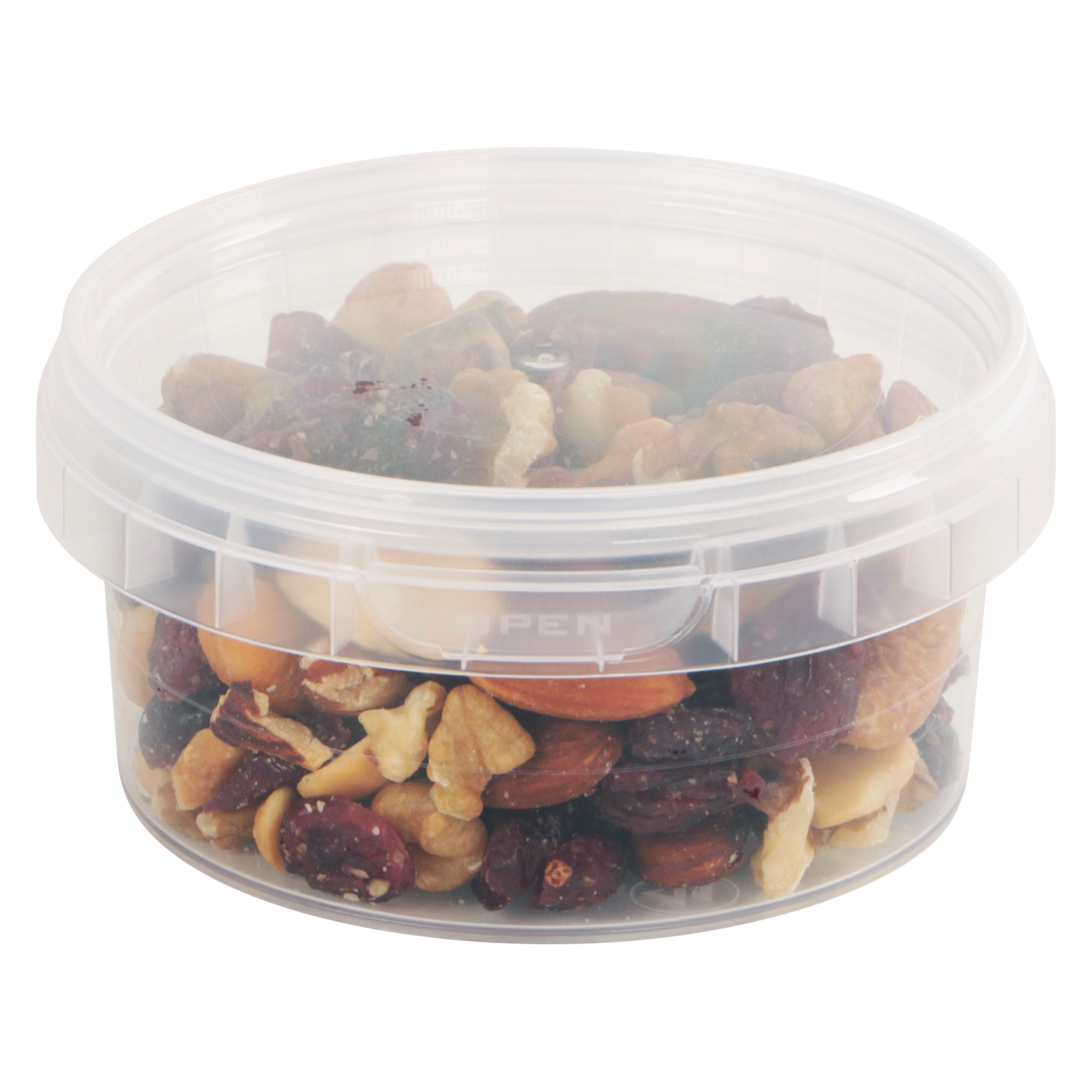 De ringlock cup verzegelt automatisch bij het sluiten van de deksel. De bak wordt geopend door het lipje te verwijderen. Op deze manier is het goed zichtbaar of het bakje al eerder is geopend. De bakjes 100% lekvrij. Ideaal dus voor het verpakken van bijvoorbeeld tapas, olijven, pesto, gesneden fruit, kaas en noten.