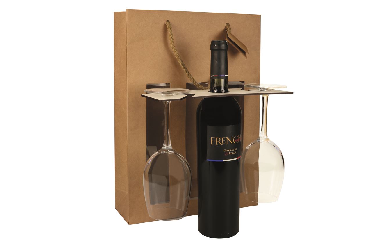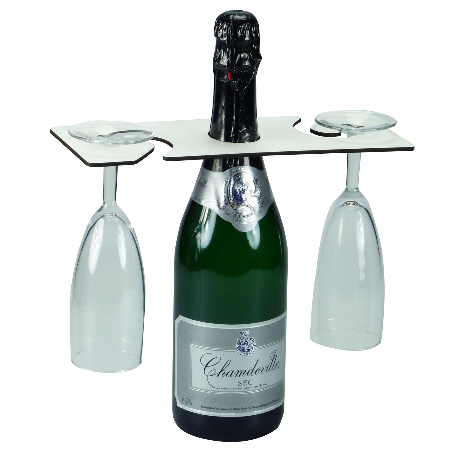 Houten fleshanger voor fles & 2 glazen