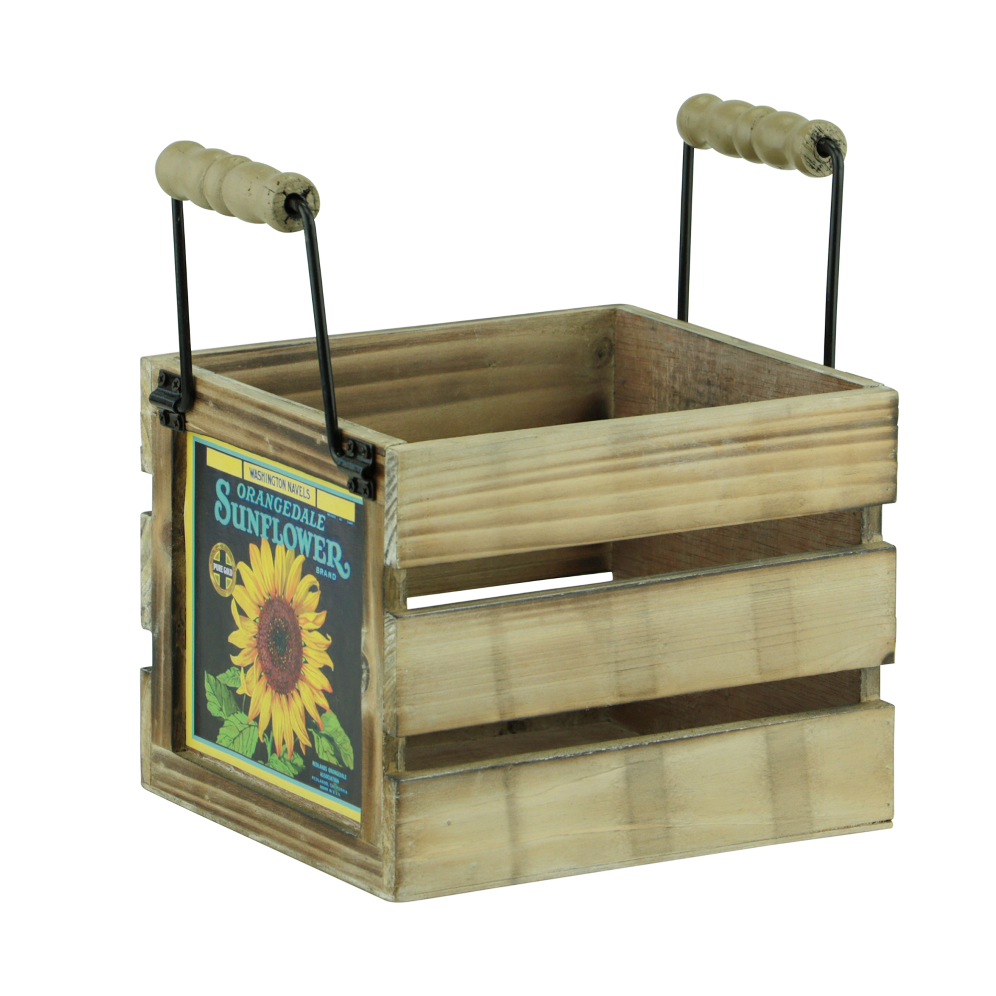 Houten krat 19x17x15 cm Sun flower