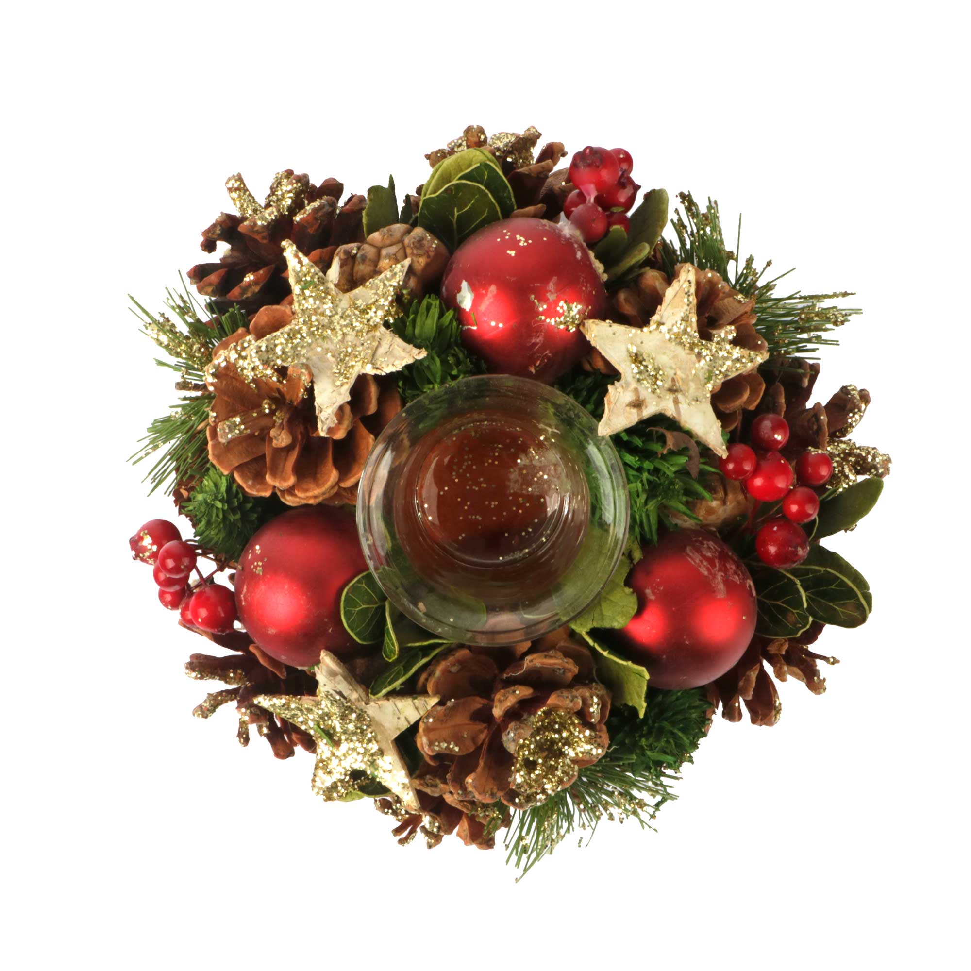 Kerstkrans 19x9 cm met waxinelichthouder en decoratie