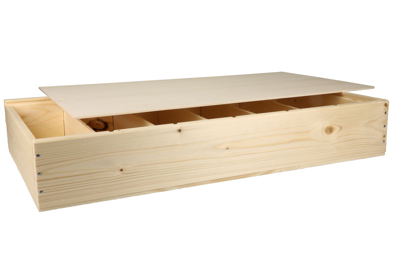 Kist met houten schuifdeksel, 6 fles