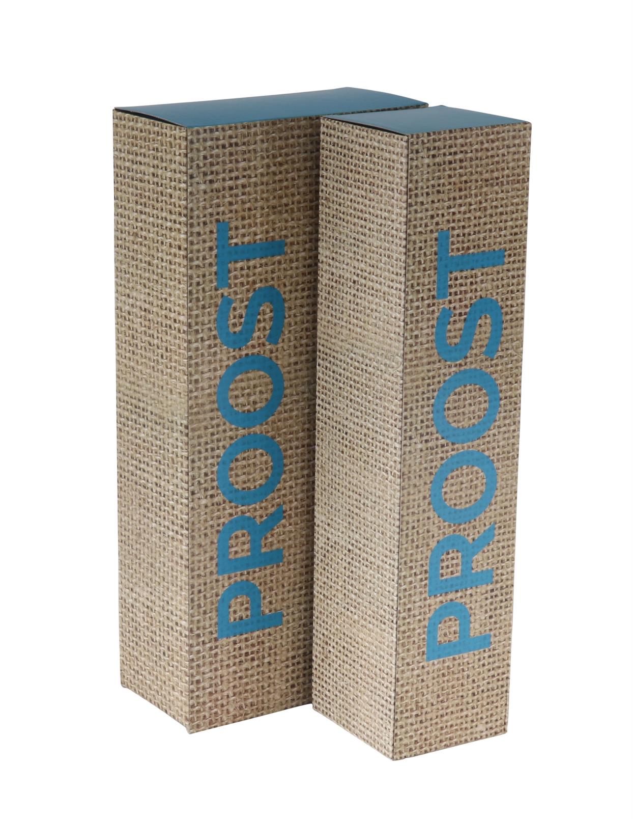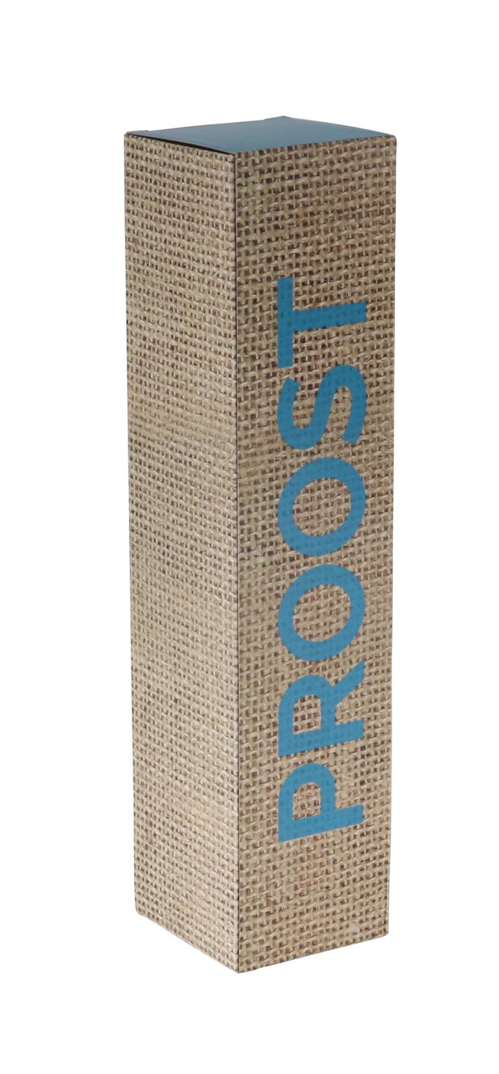 Kokerdoos 1 fles jute look Proost blauw 8x8x35,6 cm