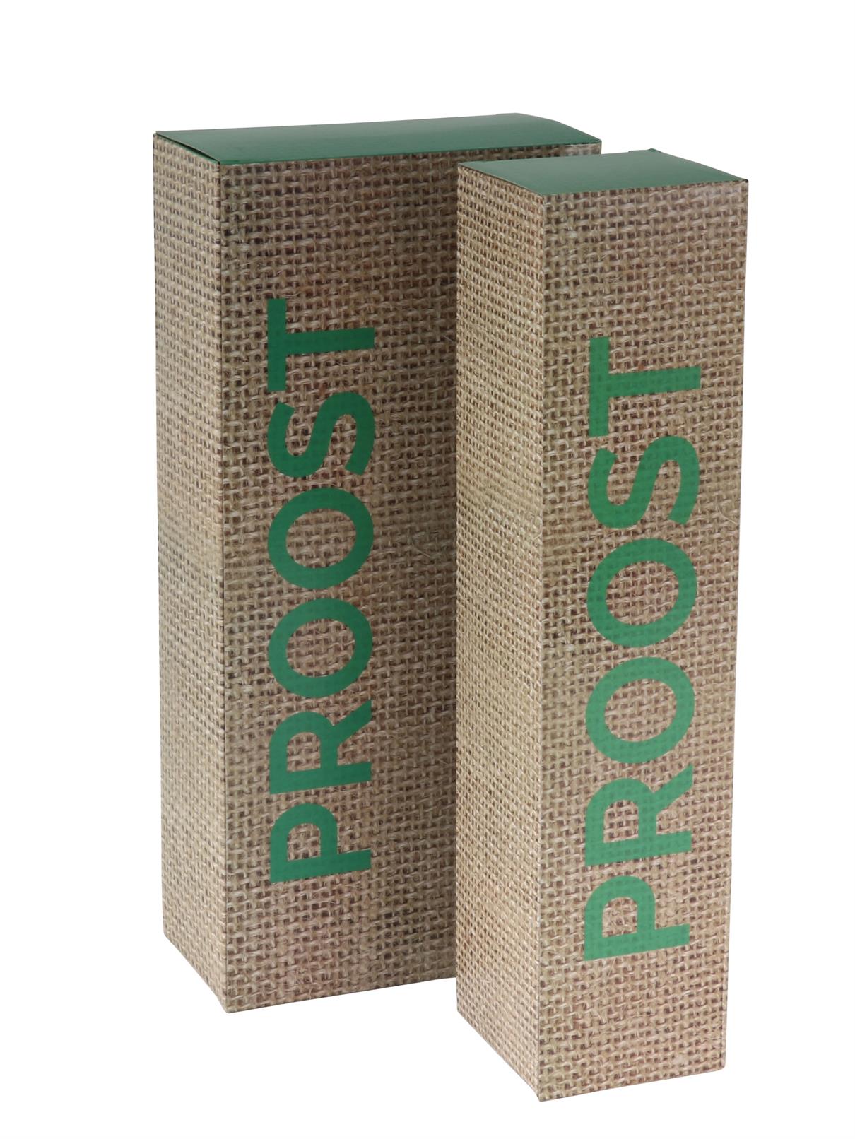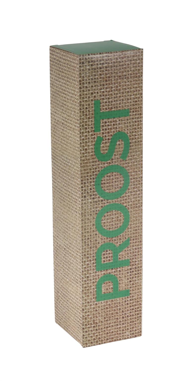 Kokerdoos 1 fles jute look Proost groen 8x8x35,6 cm