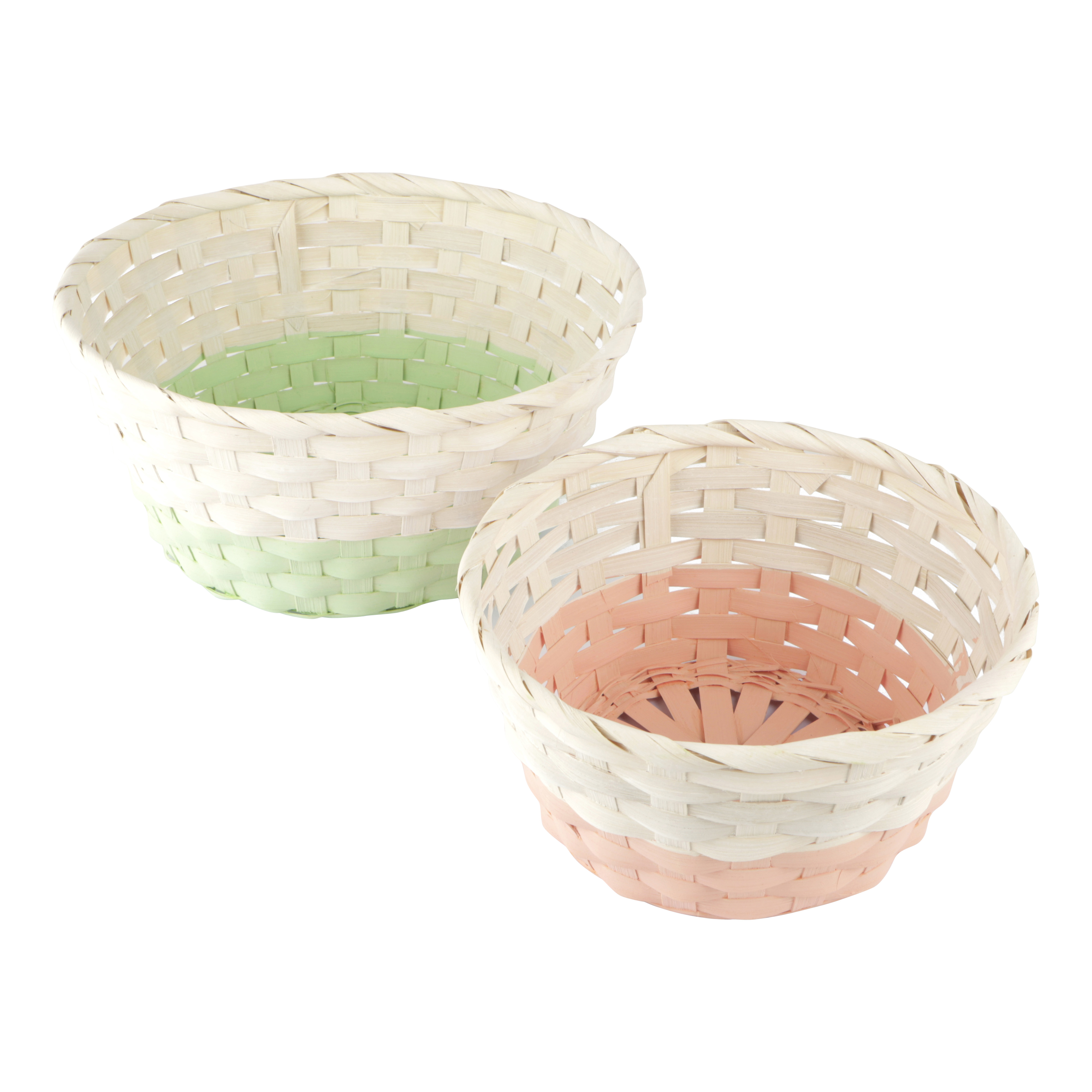 Mand bamboe, wit/pastel groen ø25x11,5 cm