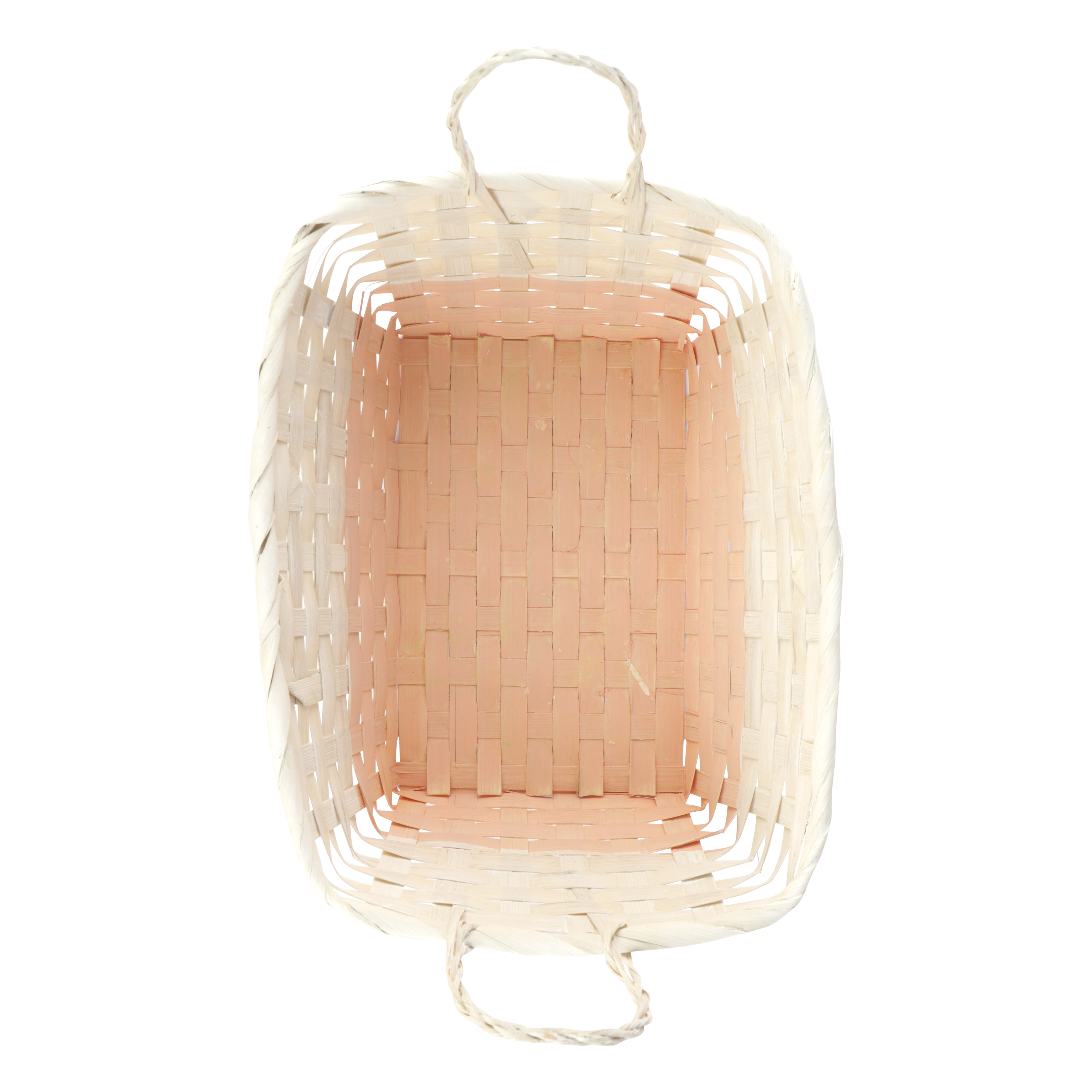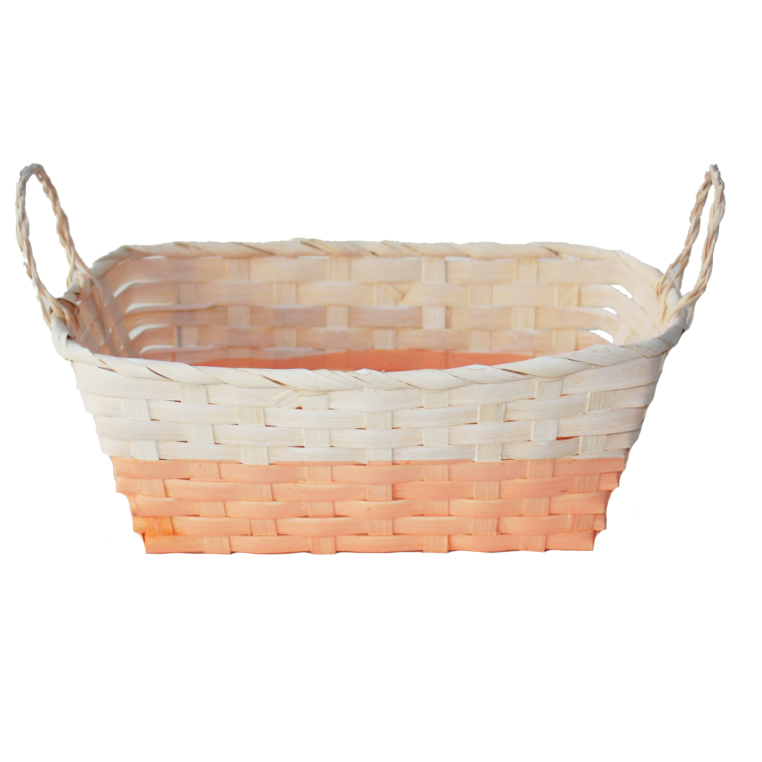 Mand rechthoek bamboe 28x20x11 cm met grepen wit/pastel oranje